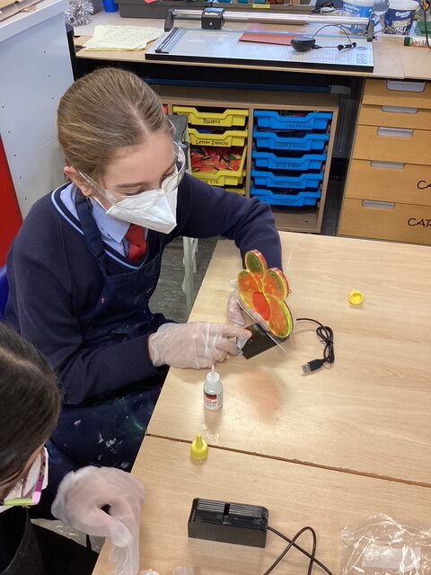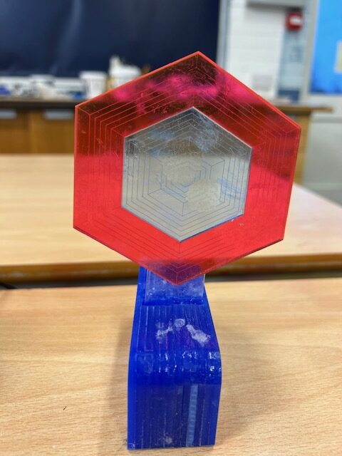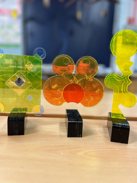 Year 7 have finished designing and making their own abstract lamp after researching the properties of Memphis design. They used CAD to laser cut the acrylic, then soldered the circuit together before gluing the whole thing! They look fantastic, well done Year 7 James Murray