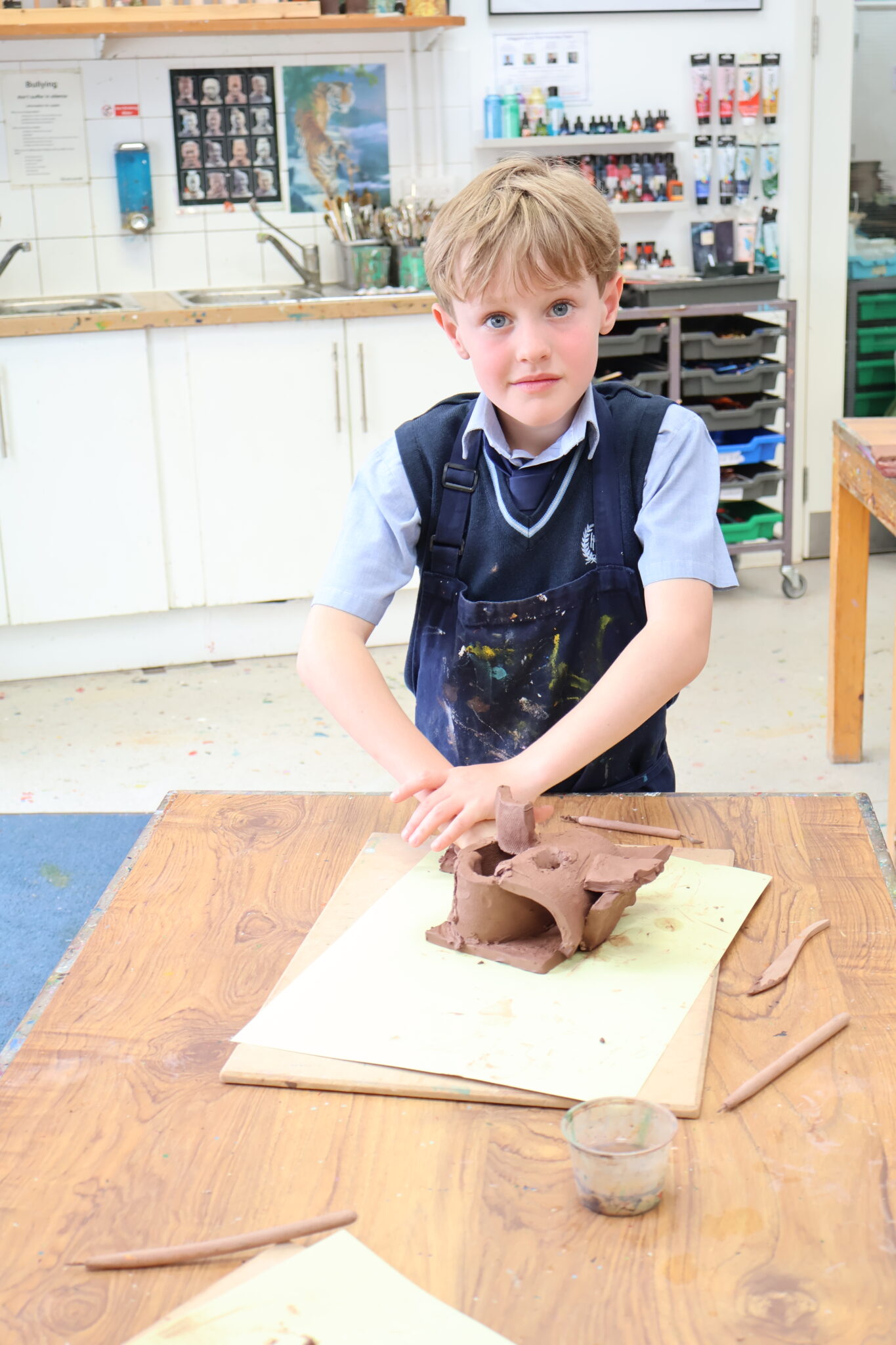 Year 3 are creating abstract stationery pots using terracotta clay. A fun and messy project. Tom Johnson / Keith Siddle