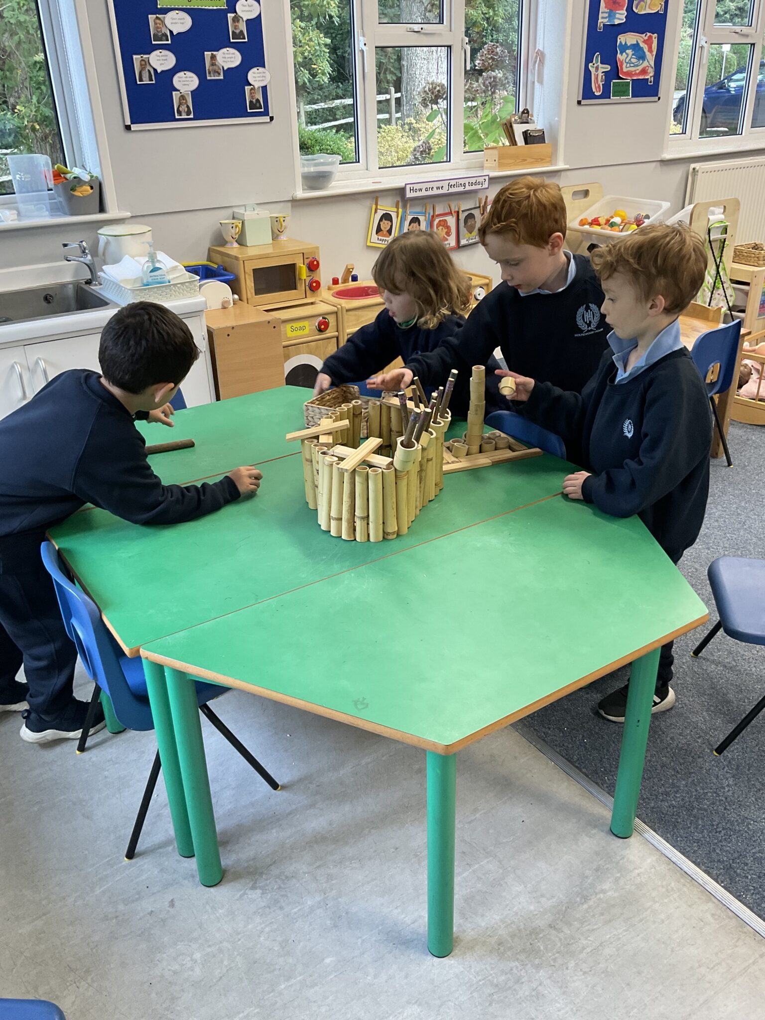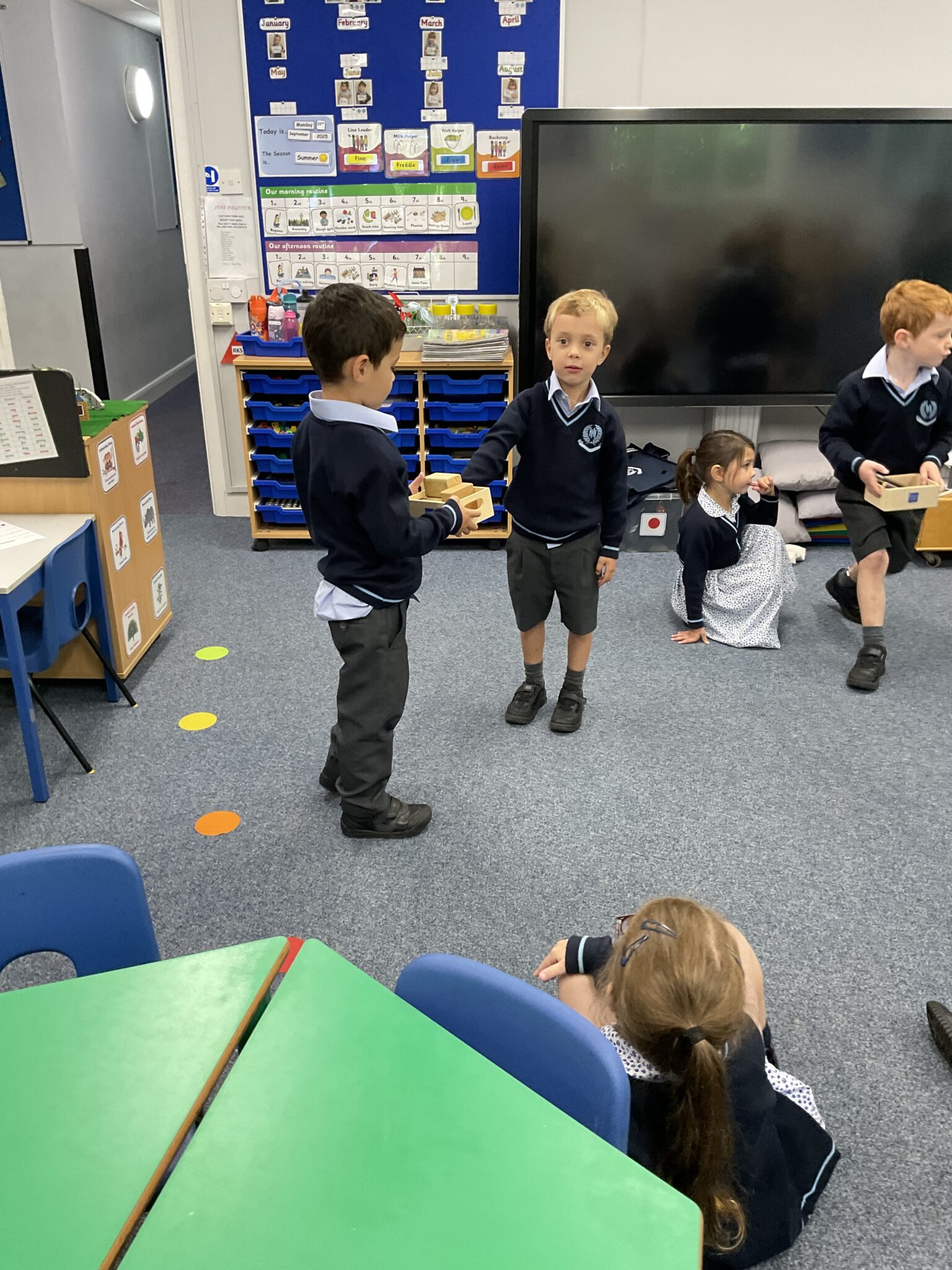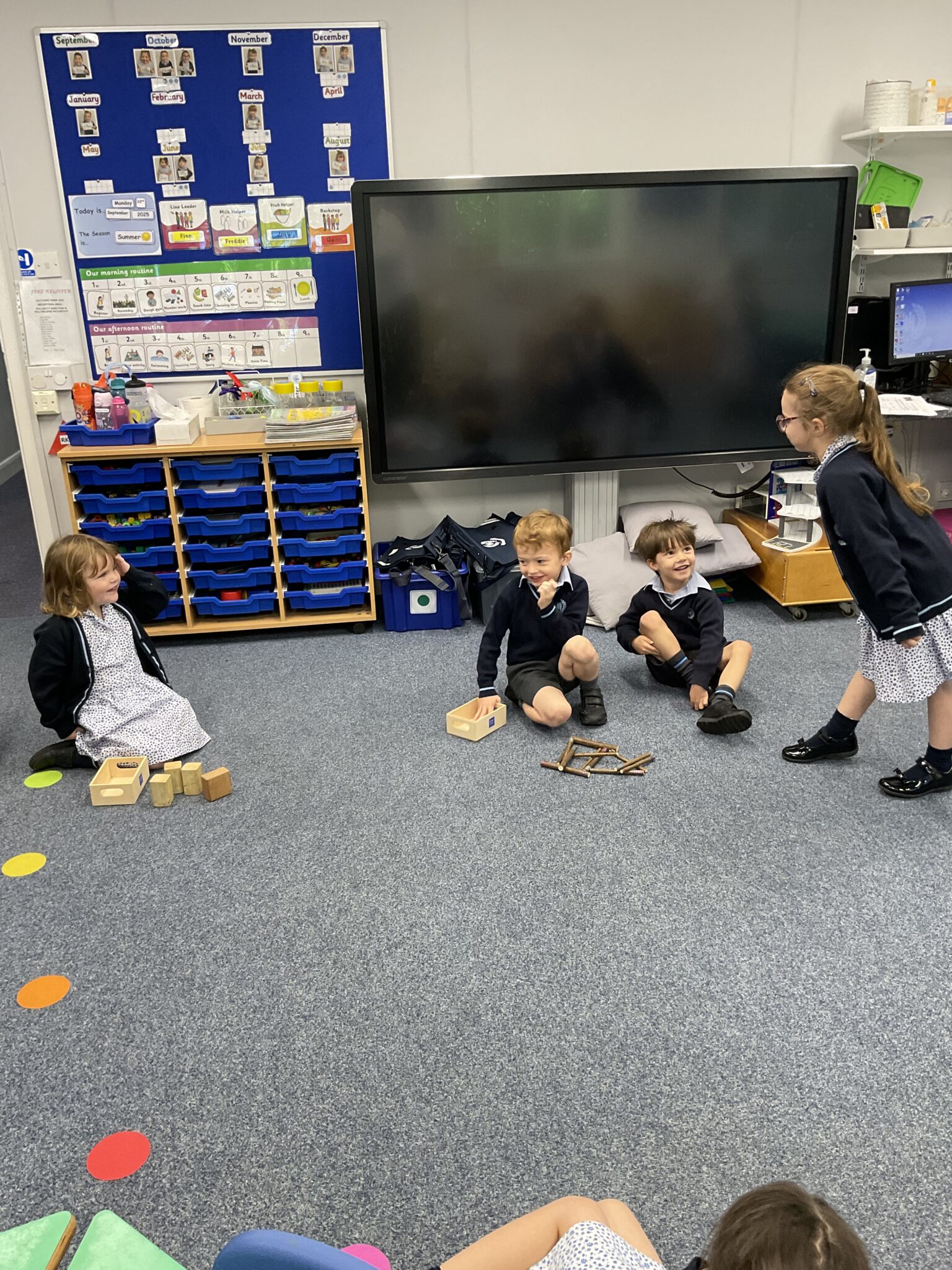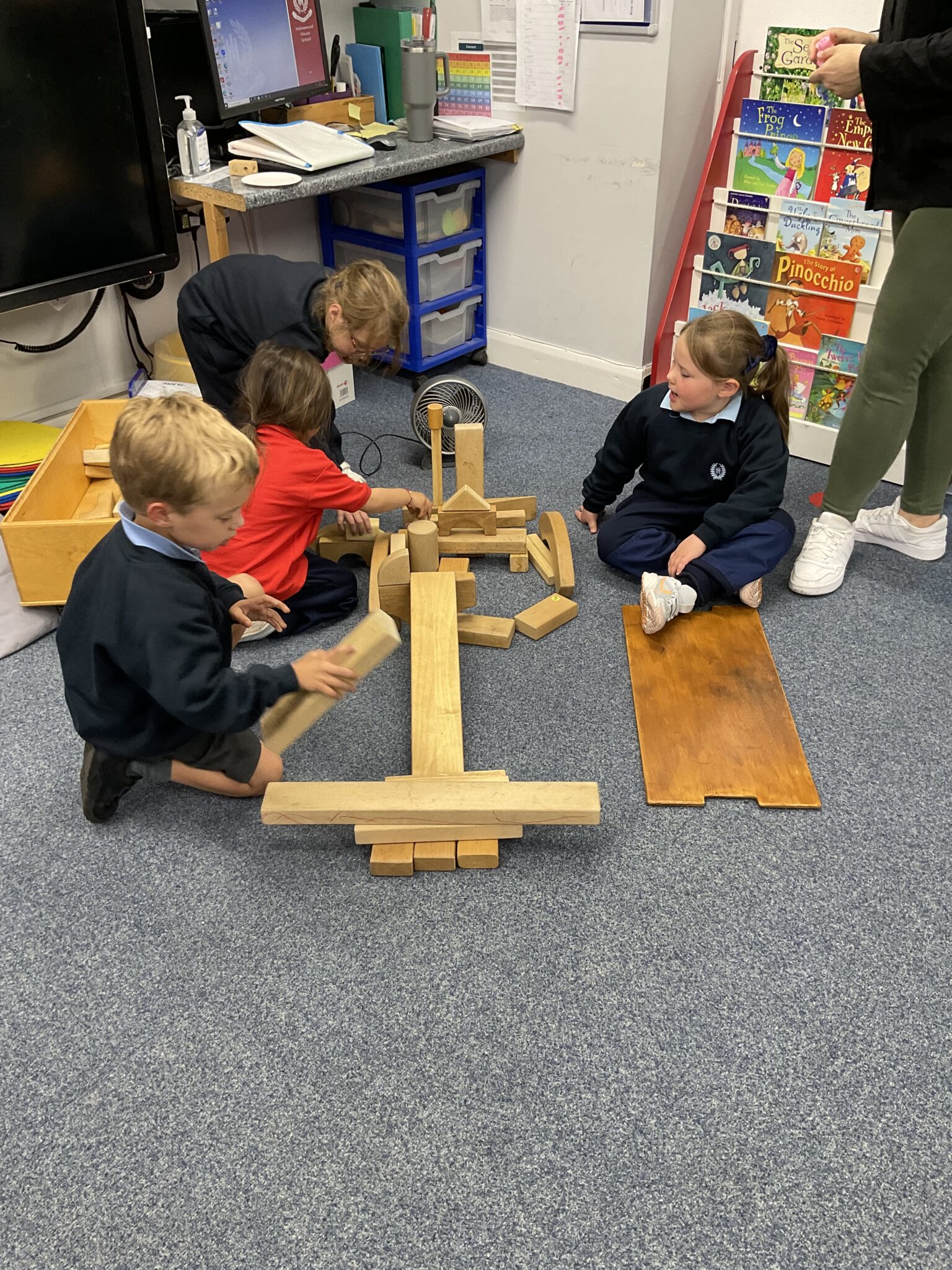 This week we have continued our topic of Fairy Tales learning about a favourite story of ‘The Three Little Pigs’. We read the story and then took turns playing the characters and acted out the story. We had a go at building houses using different materials to see which would work the best and why and even tested them by becoming the wolf to ‘blow the house down’. We talked about the people in our families and drew a picture of them, and we even baked our very own pig face biscuit – yum! Katy Shelton