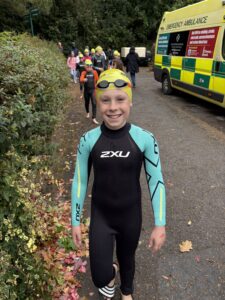 Ellie’s brother Charlie (year 7) also took part in the Hever Triathlon in the 11-12 year old age group. Despite the cold lake temperature, he came out in the first group of swimmers and went on to put in a strong performance on both the bike and in the run. Well done Charlie! What an amazing effort!
