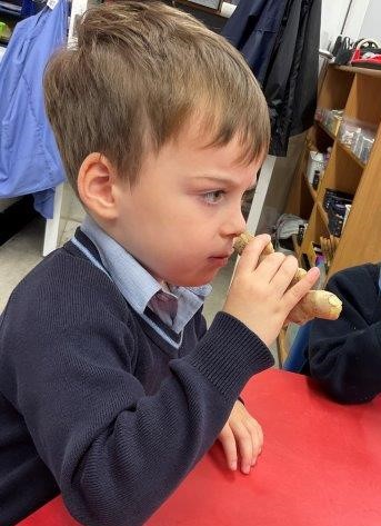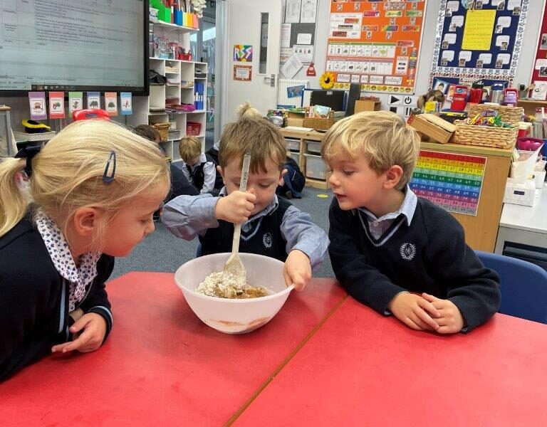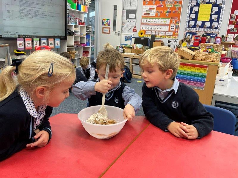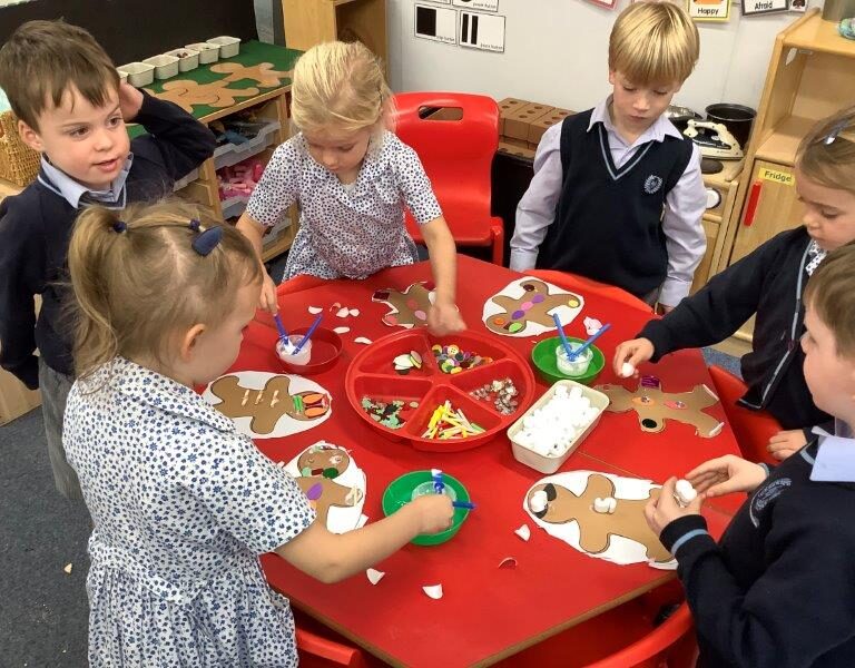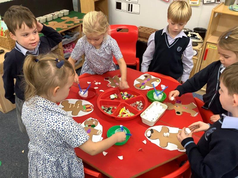 This week ‘The Gingerbread man’ has taken centre stage in RSS . Since starting our topic on Fairy tales, it is wonderful to watch their confidence grow every week while acting out these well know stories. We put our cuttings skills to the test when we cut out our Gingerbread men and collaged them using different materials. Our button box has kept the children fascinated while encouraging them to notice how each button is different , either by shape, colour, size, texture, even down to how many sewing holes each one had. The highlight of the week was making our own Gingerbread men biscuits. The children tasted the ingredients – even the ginger, which was declared ”too spicy”. It was quite a challenge rolling out the dough but they all persevered well and enjoyed eating them at the end of the day. Another successful and exciting week of learning through Fairy tales. Sheilagh Schweitzer