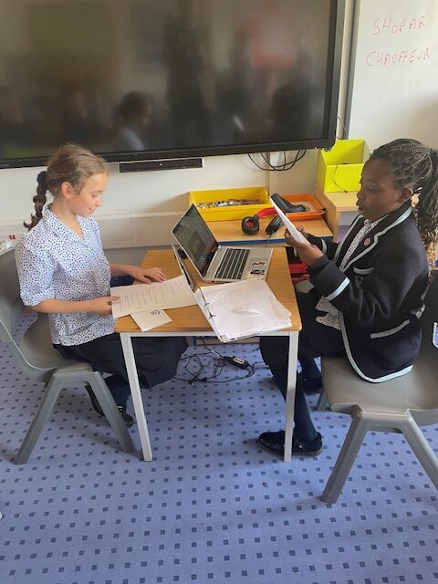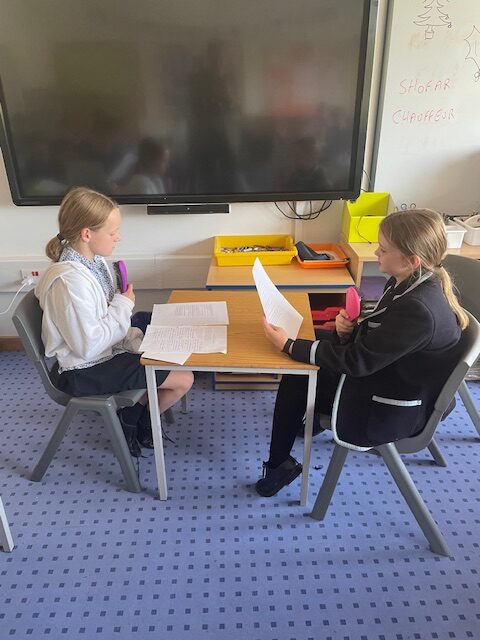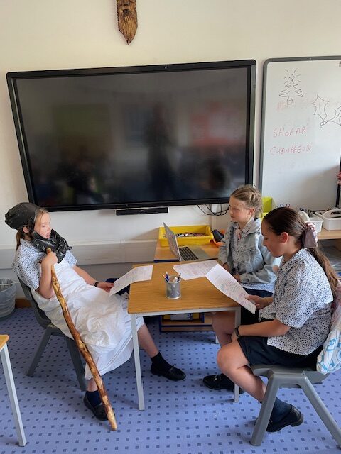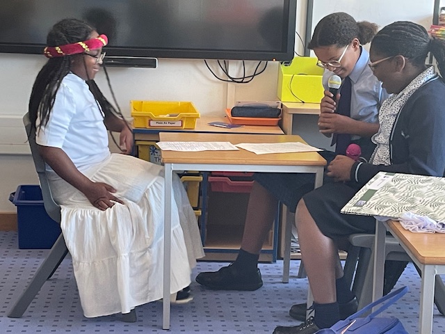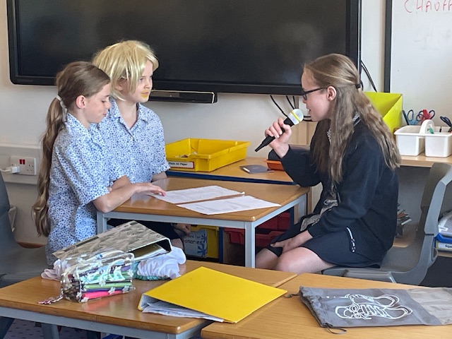 Year 6 pupils having fun dressing up for their role plays acting out a radio interview of Noah, live in the radio studio, for their TPR lessons this week. PM-J