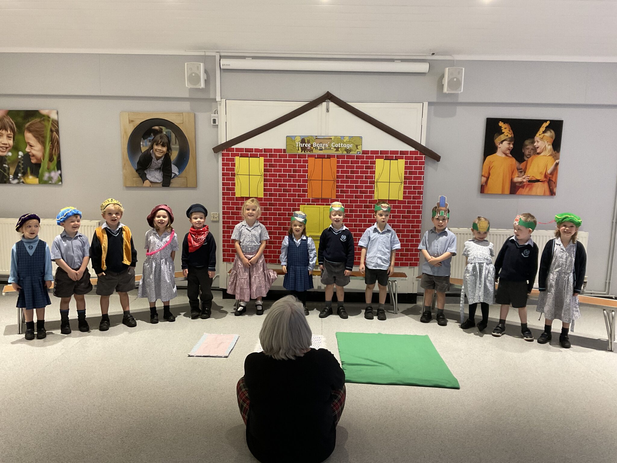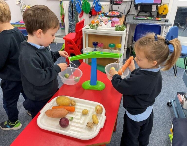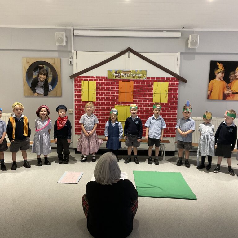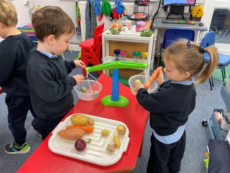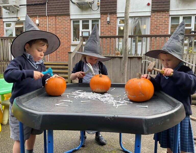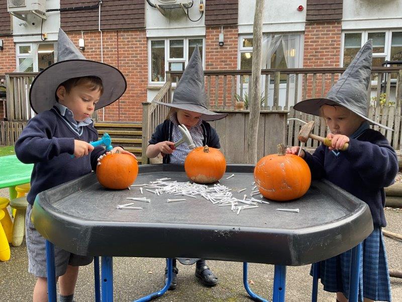 Last week RSS did their very first assembly about Goldilocks and the Three bears and WOW did they do us proud, they spoke so clearly and remembered all their words and generally did a super job – well done to all of you. This week we have continued with the last Fairy tale of the Enormous turnip which they loved acting out. These acting out sessions have clearly paid off. In maths we have been learning about the properties of shapes and how to make shapes with found materials in the playground, they even combined shapes to make different shapes. Witches and pumpkins found their way into the playground and they discovered that hitting golf tees into pumpkins was a super way to develop fine motor skills and eye hand coordination, needless to say a few thumbs felt the hammers too. 😊 The story of the Enormous turnip was a great way to introduce winter vegetables which we compared while weighing. Another great week before the children enjoy a well earned break for half term. Sheilagh Schweitzer