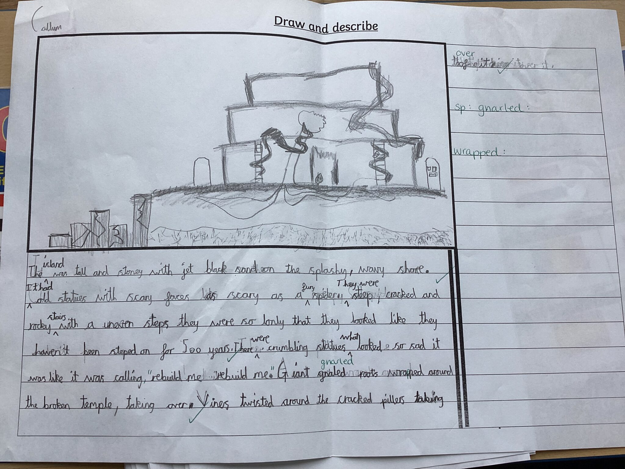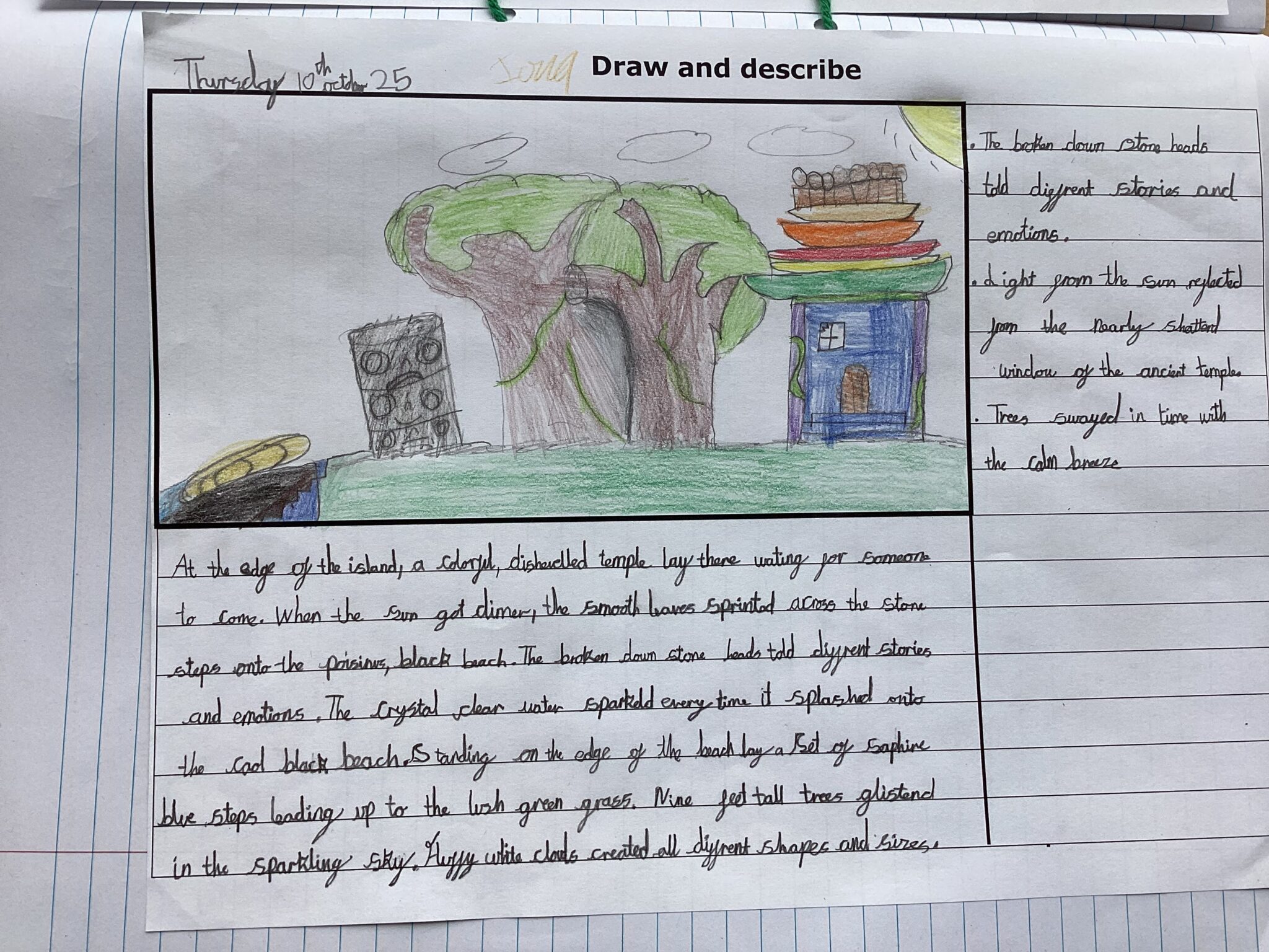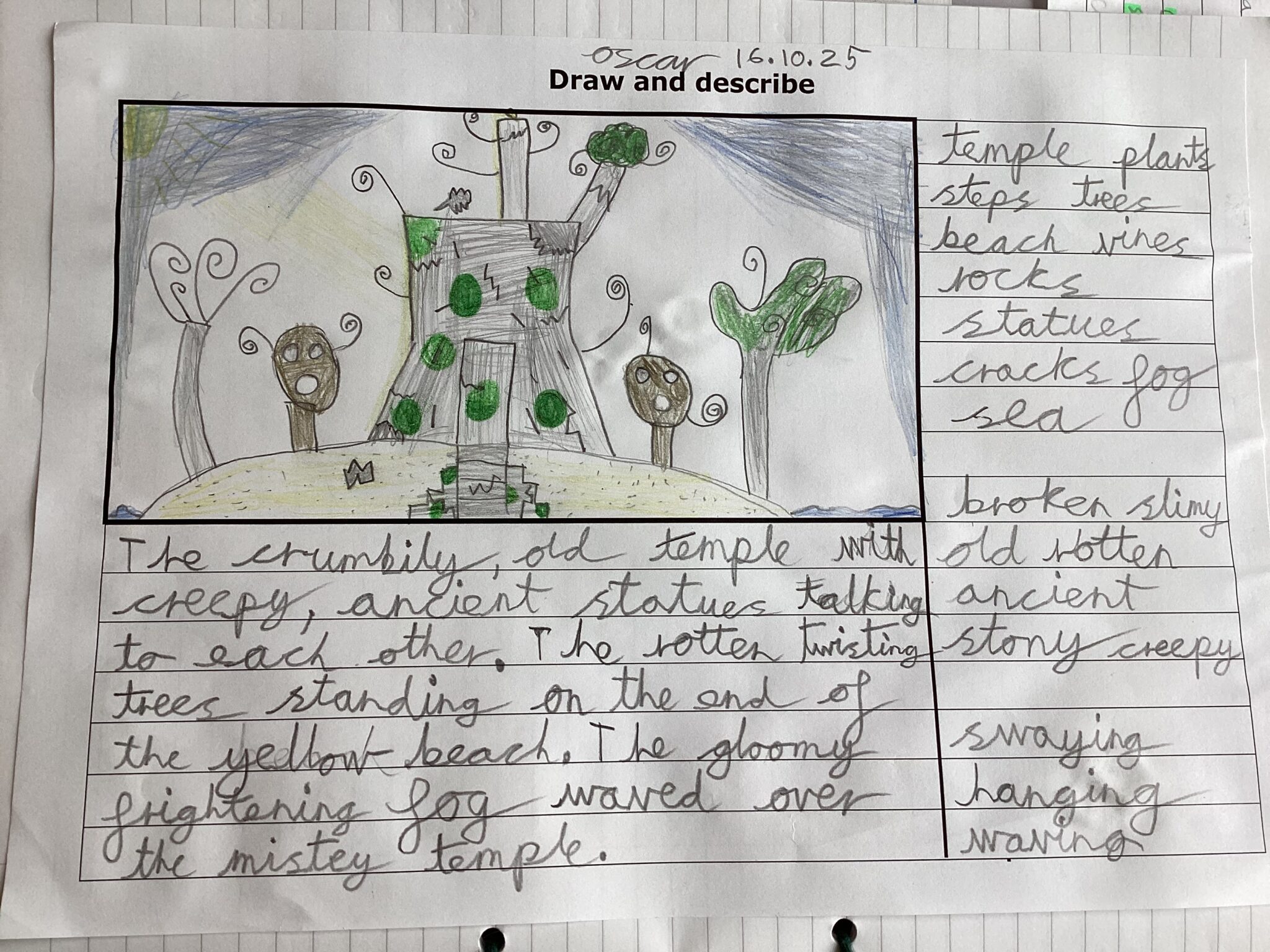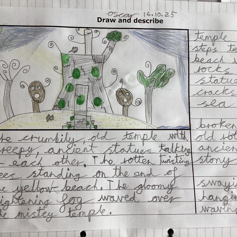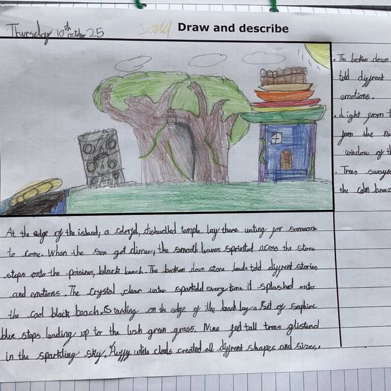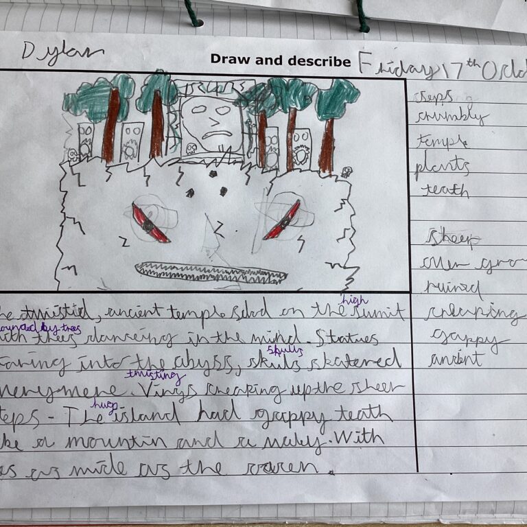 Year 4 have been working really hard on their descriptive writing this week, including using personification. They used their descriptive techniques to create some fabulous writing of a rambling isle in our book Oliver and the Seawigs. E Gorin