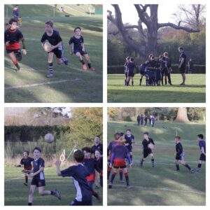 The game itself started strongly for HH and they scored a great team try which involved multiple passes and phases for a great team effort. With the game split into 4 x 10 minute slots it proved to be a perfect opportunity to give all the boys great game time. Ethan, Louis and Joel all made the step up in age group and all did exceptionally well. The pleasing thing about the game was how well we passed the ball and did not rely on a few players to score our trys. It is testament to how effective we were at this by the number of touches that the wingers got on the ball. Jonathon and William were also making their school rugby debuts and showed they are capable of making some very good contributions. Being one of the smallest players on the field did not prevent Tom from tackling one of their biggest players. His tackle technique should be noted by everyone as a model for everyone to copy. The game ended with a thrilling 7 – 7 draw as HH managed to close the 2 try gap in the final quarter. Well done everyone.
