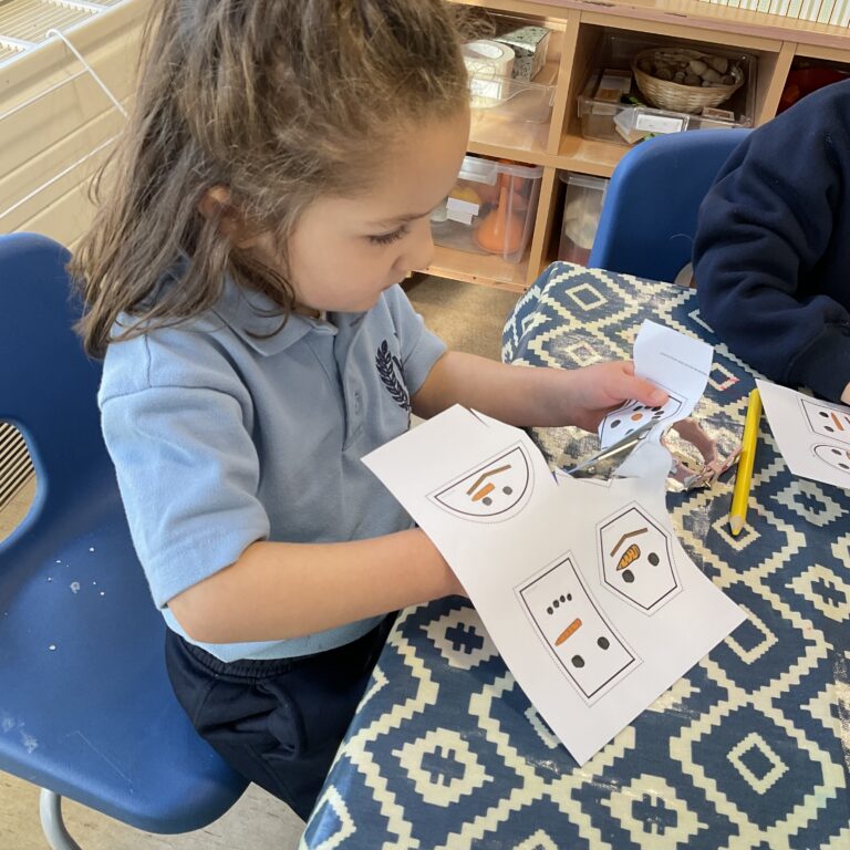 Our theme this week was Winter, and activities were based around this. We focused on shapes, with the children enjoying making their own snowmen by cutting out and using different shapes. We also talked about appropriate clothing to wear in winter, helping the children understand how to keep warm.