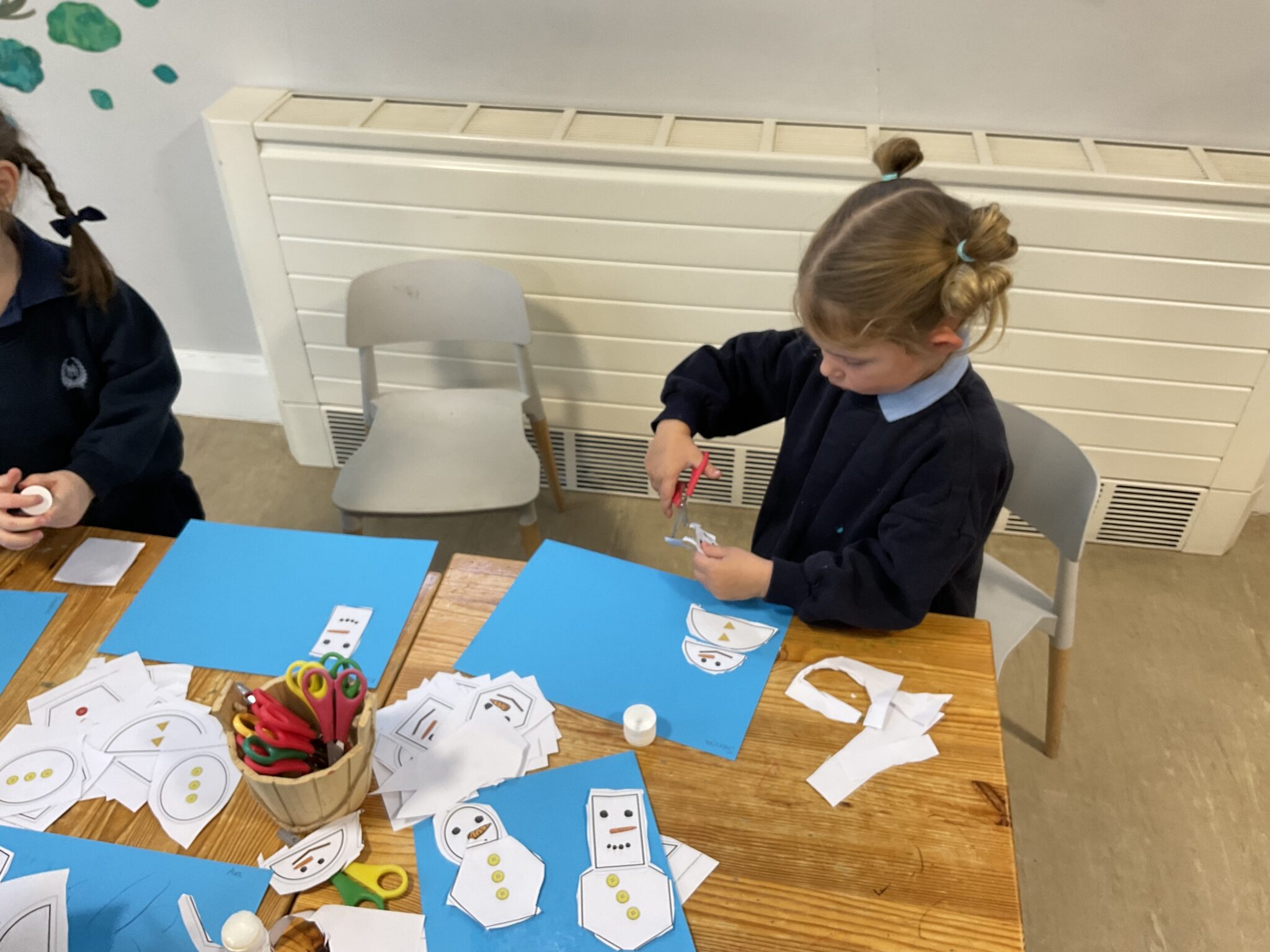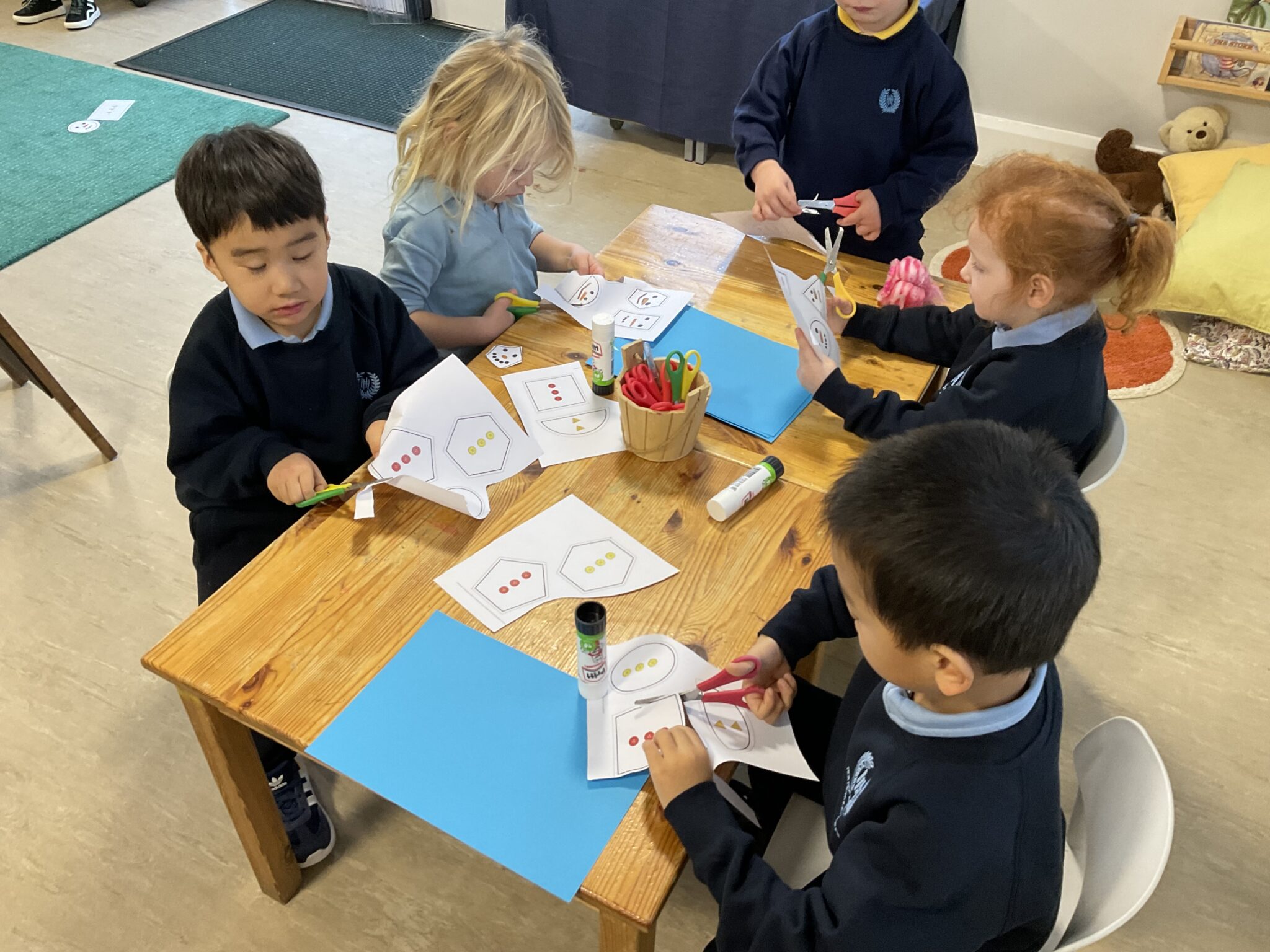 Our theme this week was Winter, and activities were based around this. We focused on shapes, with the children enjoying making their own snowmen by cutting out and using different shapes. We also talked about appropriate clothing to wear in winter, helping the children understand how to keep warm.