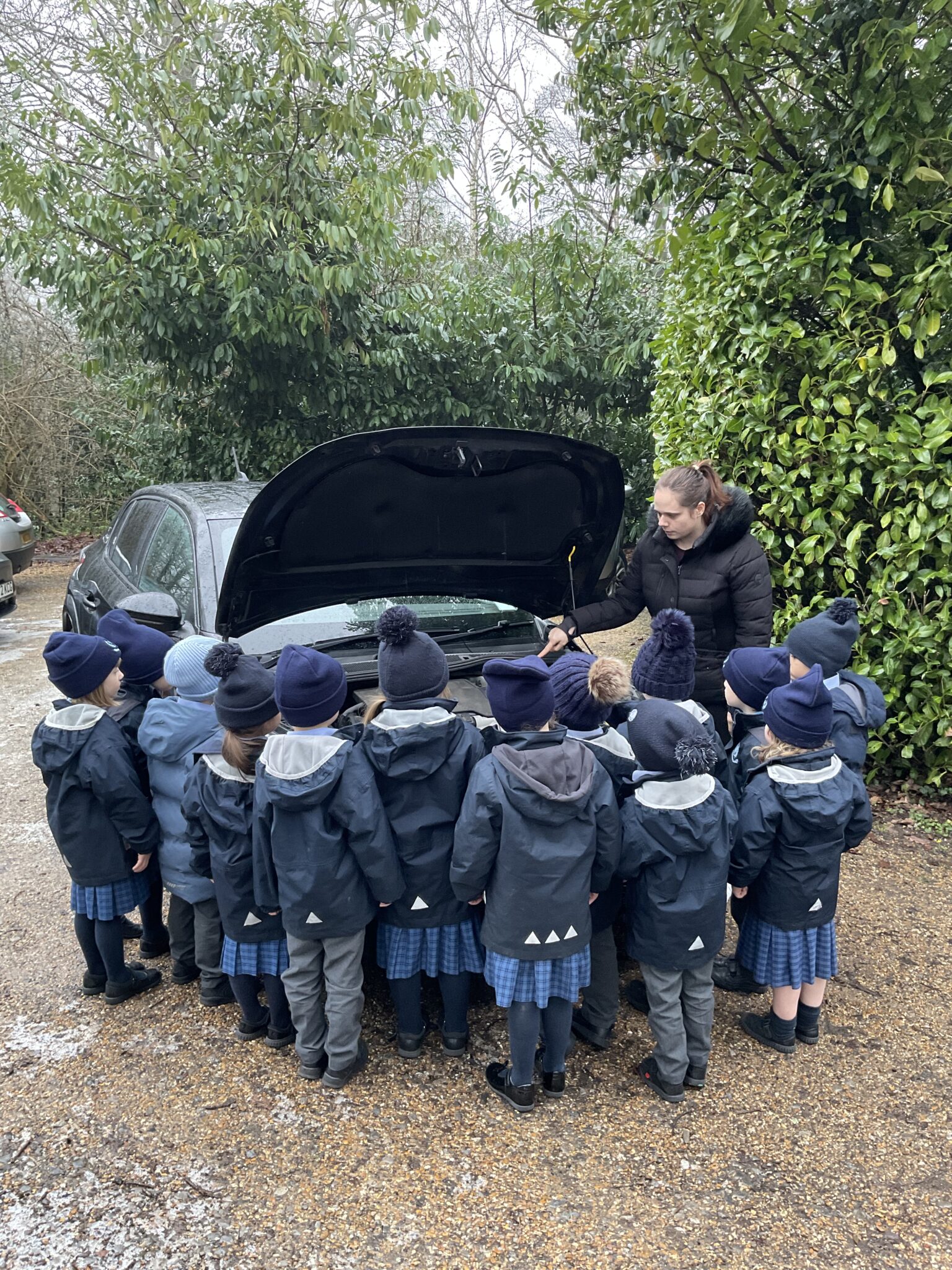 This week in RKS we have begun a new topic of Transport – we have looked at the different types of transport – land, air, water and space transport. We learnt all about cars, looking at a car and the different parts, we had a look at the engine and learnt about how a car works – some of us even had a go in the drivers seat! We also looked at tallying in maths and went out in the school grounds making a tally chart of the different colour cars we could see and worked out which there was most and least of. Katy Shelton