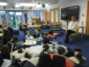 To support the National Year of Reading Year 3&4 will be able to enjoy the Story Lounge in the Learning Hub every Friday morning break time. Members of staff have volunteered to read from all departments across the Pre-Prep and Prep school. Pupils are invited to listen whilst relaxing on the rugs. Thank you this week goes to Mrs Baker, who read from Mr Gum by Andy Stanton.
