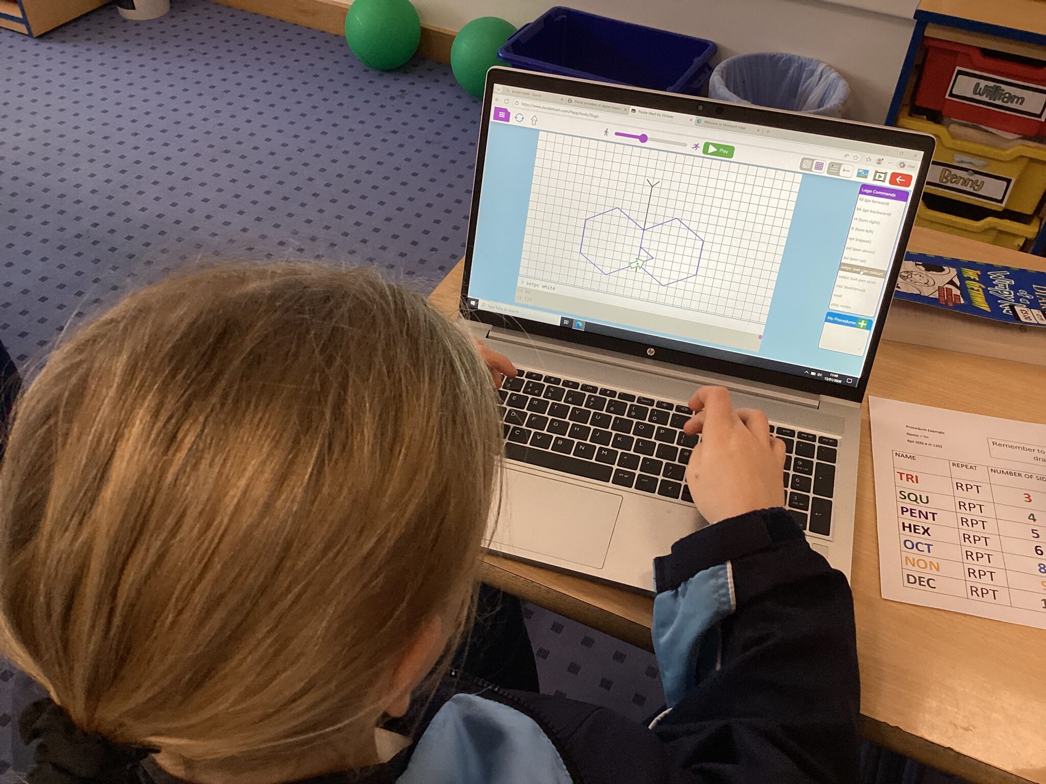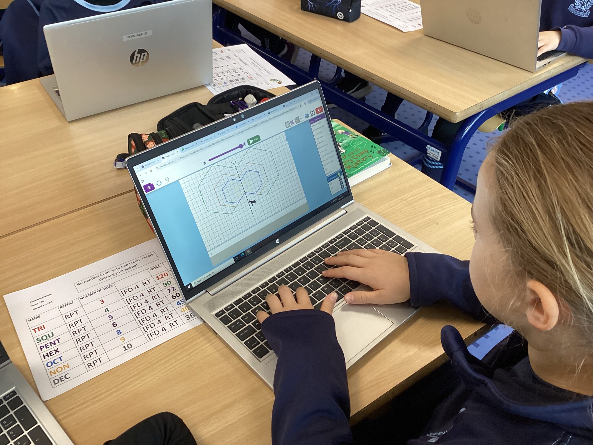 Year 4 have been enjoying learning about coding this term in Computing. The children have been inputting instructions to make various drawings on the computer. We have been using our knowledge of 2D shapes to input code and create different colourful pictures, such as butterflies!