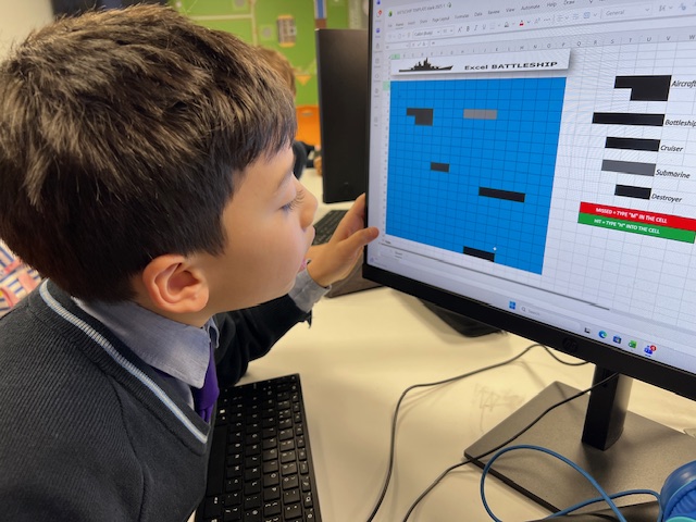 This term, Year 5 have been introduced to spreadsheets, developing their understanding of how data is organised into rows and columns. They have begun exploring some of Excel’s more powerful features, including the AutoFill (fill down) tool, which they used to efficiently complete sequences such as days of the week, months of the year and multiplication patterns. Pupils also learned that every cell has a unique address, a key concept that will support their future work with formulas. To bring cell addressing to life, the class tested their knowledge by playing a game of Battleships, using cell references to locate their partner’s hidden fleet. There was plenty of excitement and friendly competition as pupils tried to outmanoeuvre one another and claim victory! Peter Meier