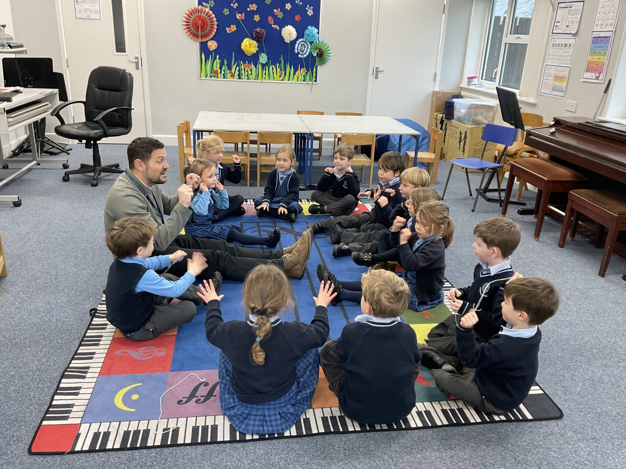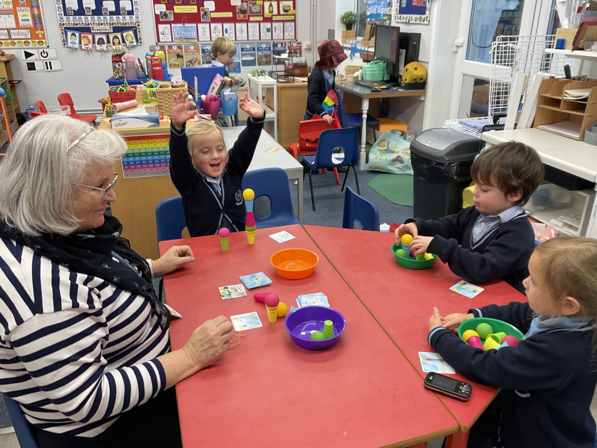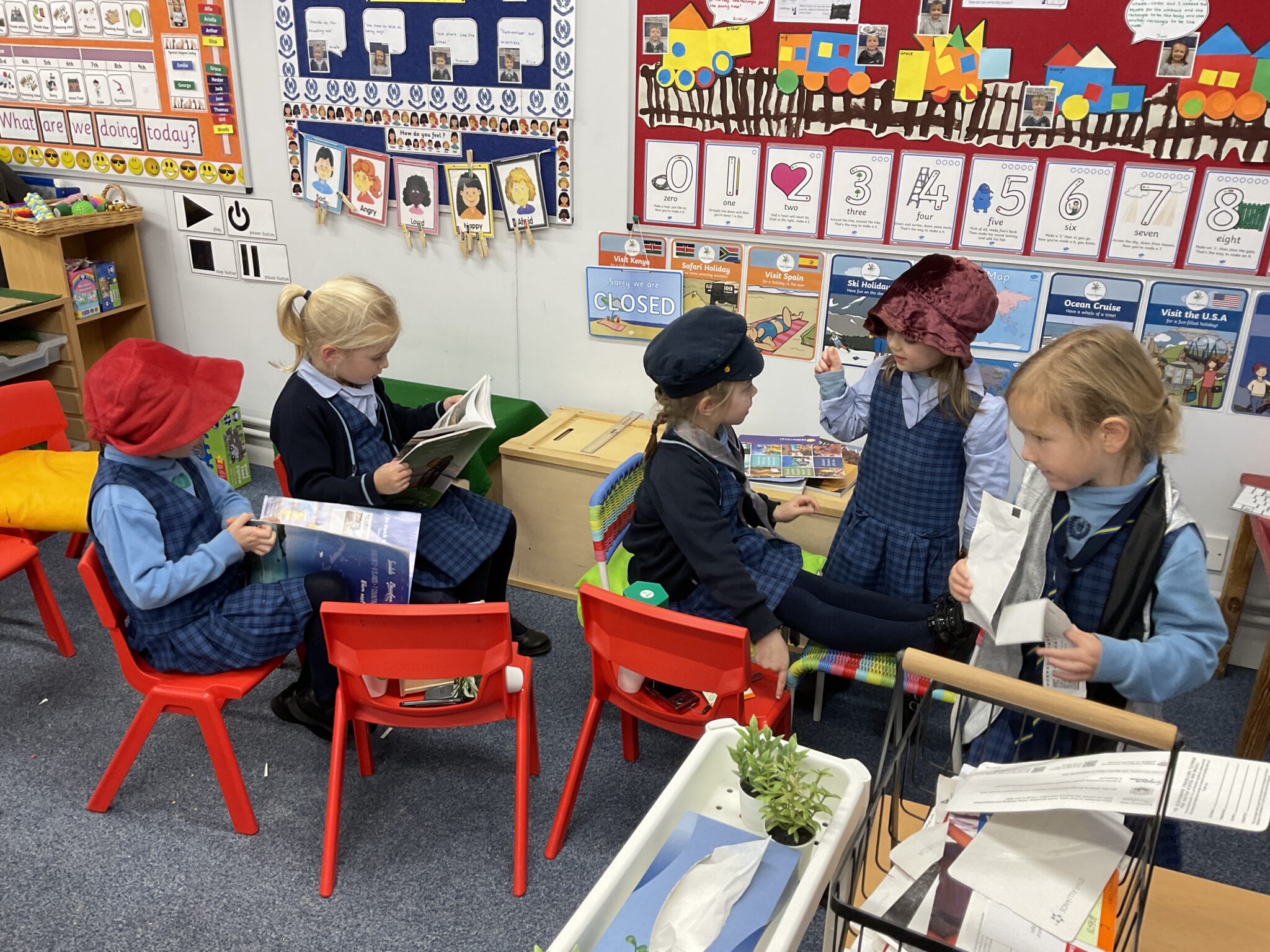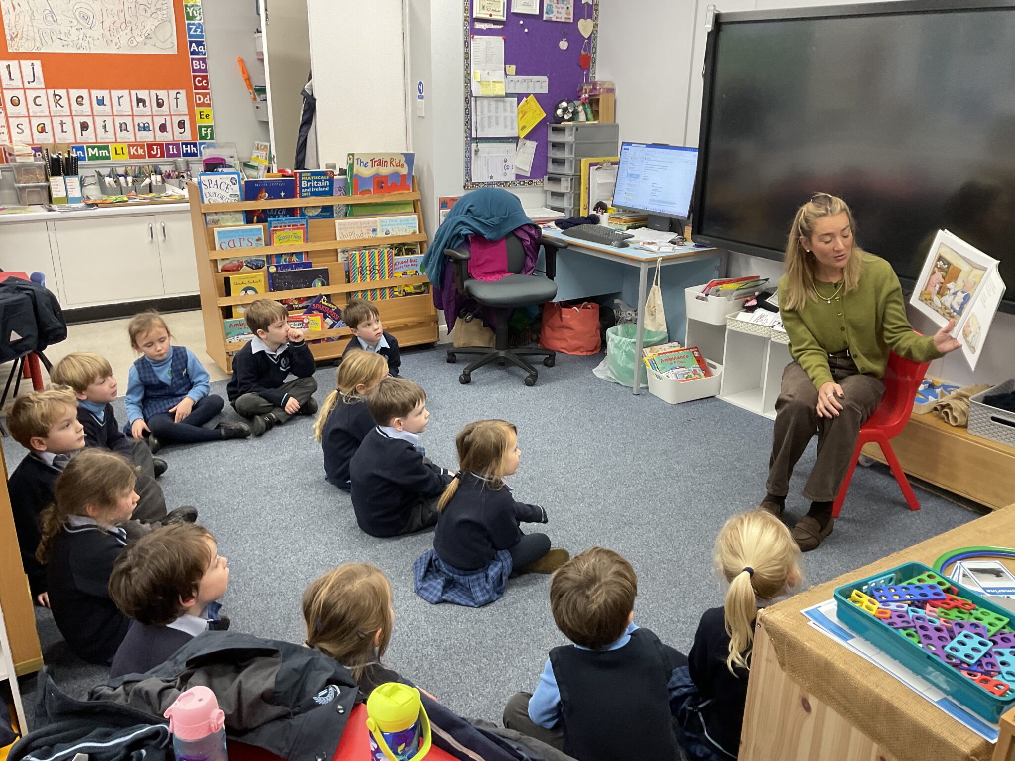 RSS have really engaged with their topic of trains this week with many train journeys being planned and booked – even some trains with ‘more comfortable seats with cushions ‘ , according to some children. Hats, waistcoats  and ties have also been in high fashion on these journeys. The children continue to be engaged  within the classroom, with creative den building and playing games like ‘Gelato gelato’, while we have been contending with excessive rain. We are getting back into the swing of having Parents coming into the class to share their favourite stories and this week it was one of Julia Donaldson’s book read by Ariella’s Mum. Mr Parker continues to keep the children active and listening during music lessons  and they always come back after that lesson on a ‘high’.  Discussion and topic work has included work  around maps, roads and making trains with shapes. Sheilagh Schweitzer