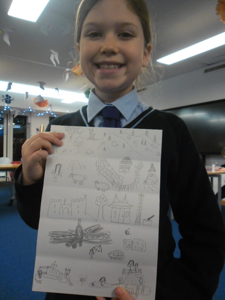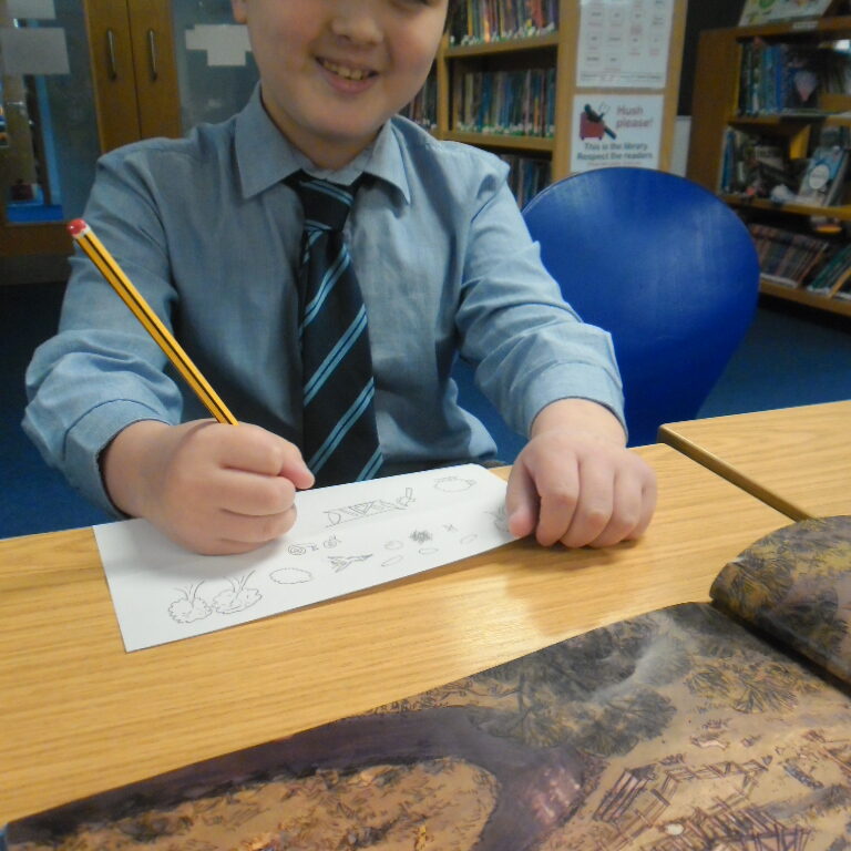Year 4 have been reading ‘The Tree and the River by Aaron Becker. It is a wordless book and presents a time-lapse portrait of humankind and our impact on the natural world, an alternate past, or possible future. This week they looked for tiny details in the illustrations depicting the five sections of the book; nature, settlement, bigger settlement, technology and flood. They created a series of small line drawings which they will use to create their own version of the book.