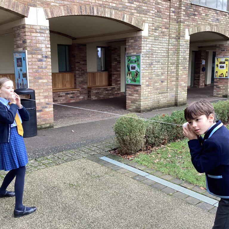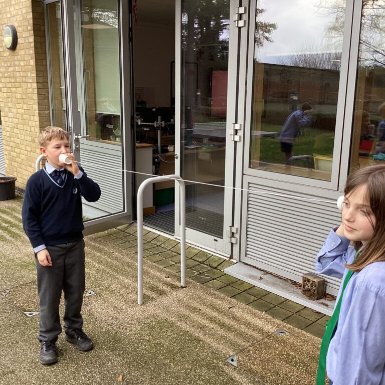 In Year 4 science we have been investigating how sound travels. Today we made our own paper cup telephones and experimented with making sounds. We discovered the effects of tying a knot in the string, the length of string and whether the sound can travel down the string when placed around a corner. Year 4 Team