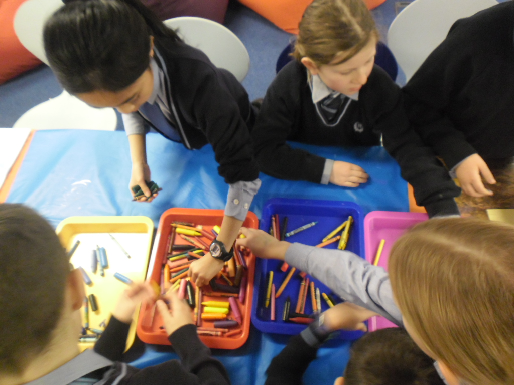 This week Year 4 created their river for their book based on The Tree and the River by Aaron Becker. They had to work together to ensure the individual sections met up so the river (story) flows. They looked at how and to what effect, the illustrator uses colour, light and the changing seasons. They then selected colours for the five sections of their storyline and made rubbings of different textures to create the background for their story pages. Catherine Duncumb