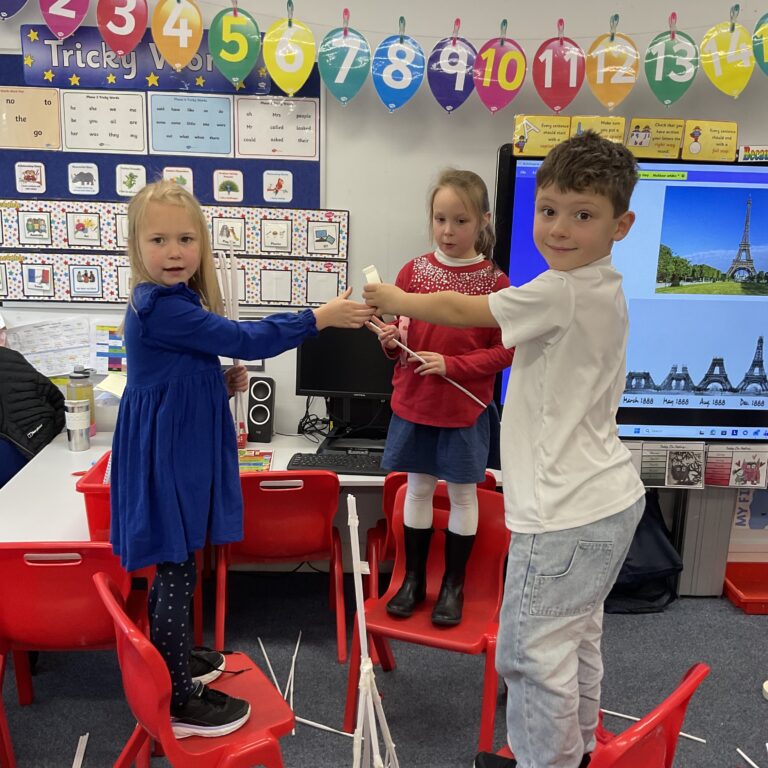 Year 1 have had a great day celebrating French Day on Wednesday.  They started the morning creating their own pictures in the style of Matisse and then we used craft straws to build Eiffel Towers.  Their challenge was to build a tower that stood up on its’ own requiring great team work skills. They worked so hard on this challenge not only to collaborate together but to try to make the tallest tower that they could. 1BR’s tallest towers measured 1m 60cm!