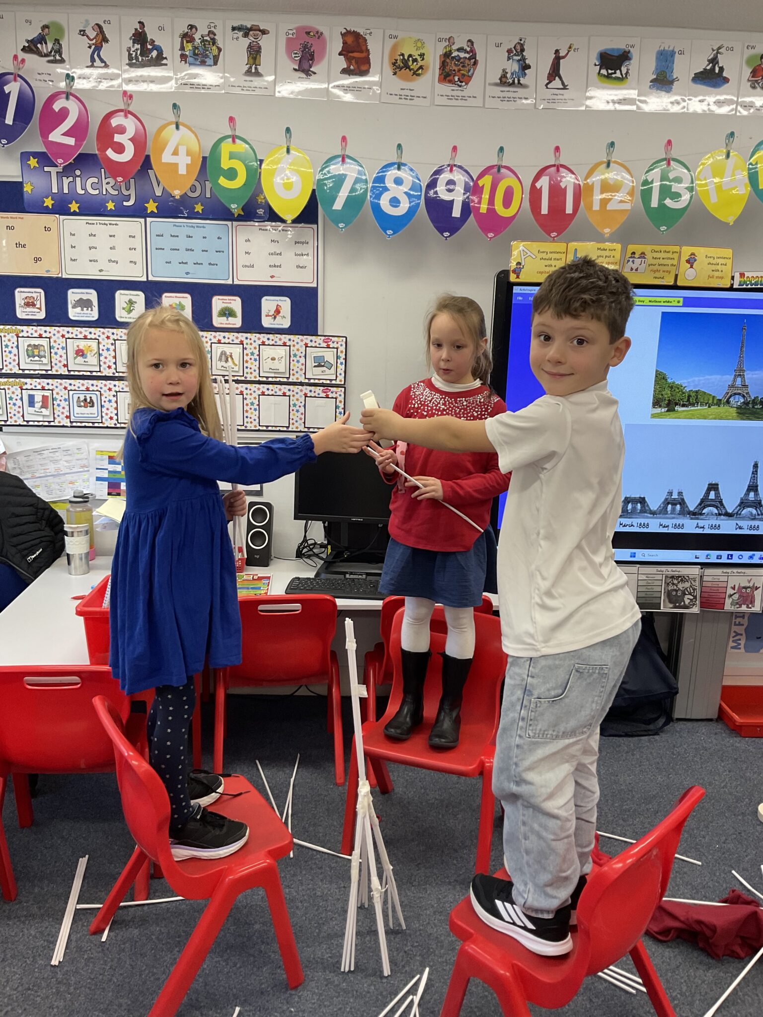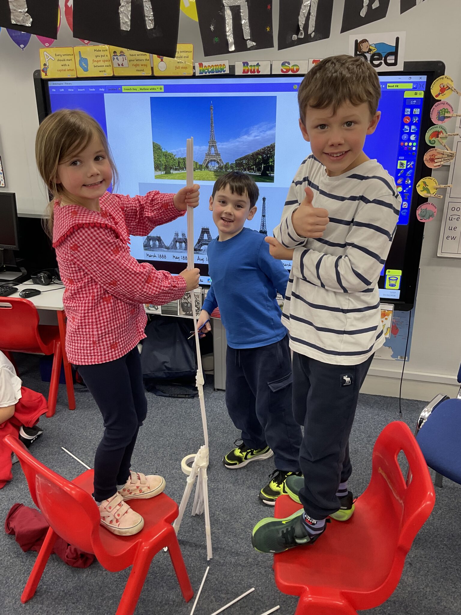 Year 1 have had a great day celebrating French Day on Wednesday.  They started the morning creating their own pictures in the style of Matisse and then we used craft straws to build Eiffel Towers.  Their challenge was to build a tower that stood up on its’ own requiring great team work skills. They worked so hard on this challenge not only to collaborate together but to try to make the tallest tower that they could. 1BR’s tallest towers measured 1m 60cm!