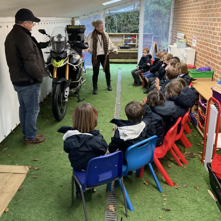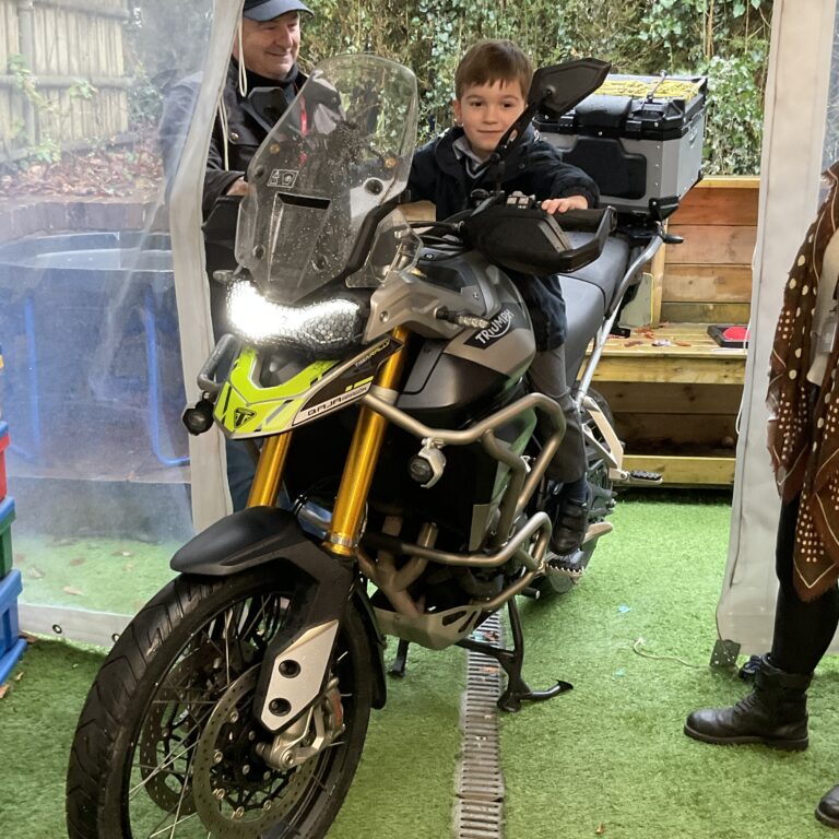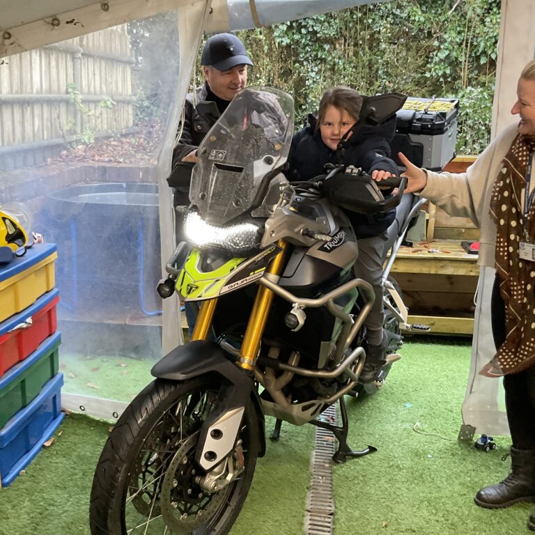 We were really lucky to have a special visitor this week to show us a motorbike, the children had great fun learning all about the motorbike and how it works and even had the chance to sit on it and rev the engine – beeping the horn was a particular highlight! Katy Shelton