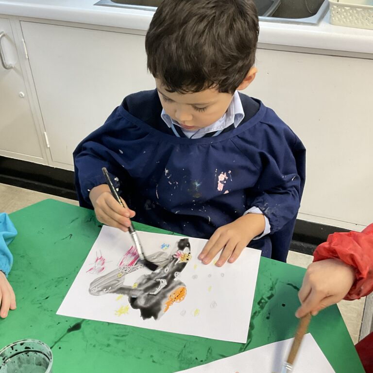 This week in RKS we are rounding off our transport topic, learning about space and the transport we might use to go into space! We created some wonderful magic space pictures, using crayons and then washing over them with some magic black water, the children loved seeing the results! We have also been using shapes to create rockets and other transport in maths.