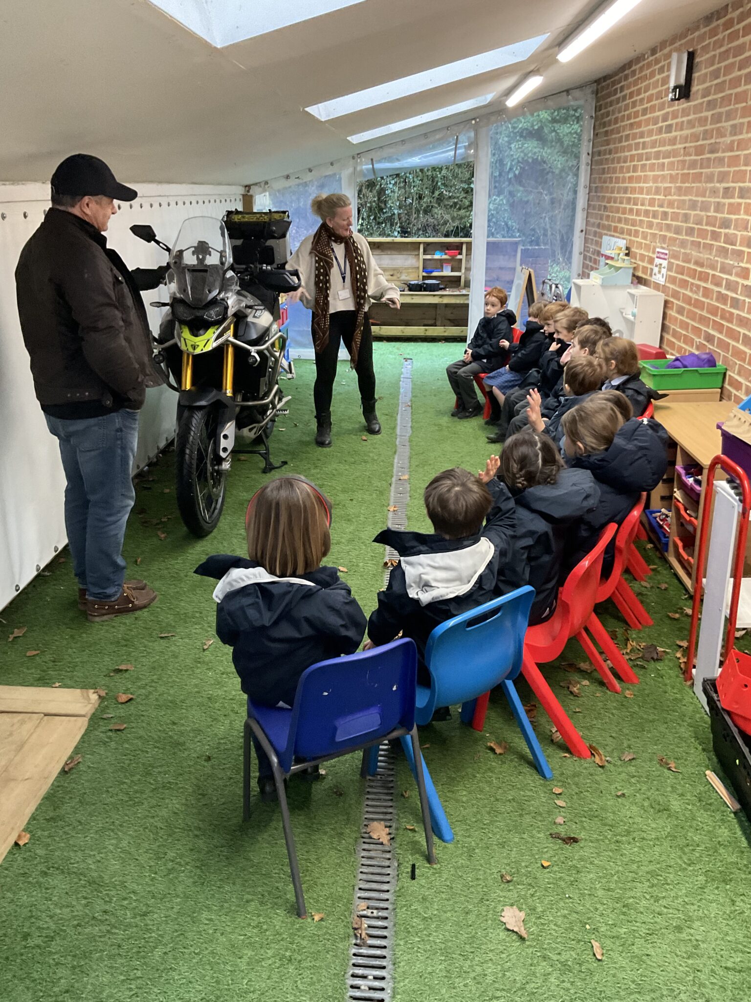 We were really lucky to have a special visitor this week to show us a motorbike, the children had great fun learning all about the motorbike and how it works and even had the chance to sit on it and rev the engine – beeping the horn was a particular highlight! Katy Shelton