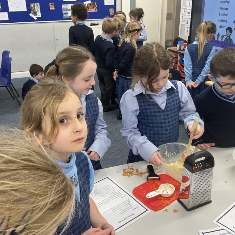 As part of our topic, we travelled back in time to learn about life during the war. We discovered that families were given ration books, which meant they could only buy small amounts of certain foods. To understand what this was like, we challenged ourselves to bake wartime carrot biscuits using limited ingredients just as families would have done many years ago!