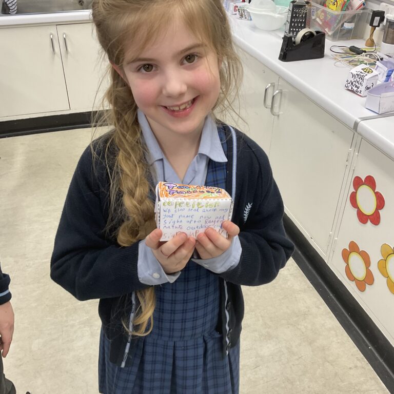 But we didn’t stop there… We became creative designers too! The children invented their own biscuit brands, complete with catchy names, exciting slogans and eye-catching packaging to attract customers. They carefully thought about colours, pictures and persuasive words to make their products stand out on the shelf.