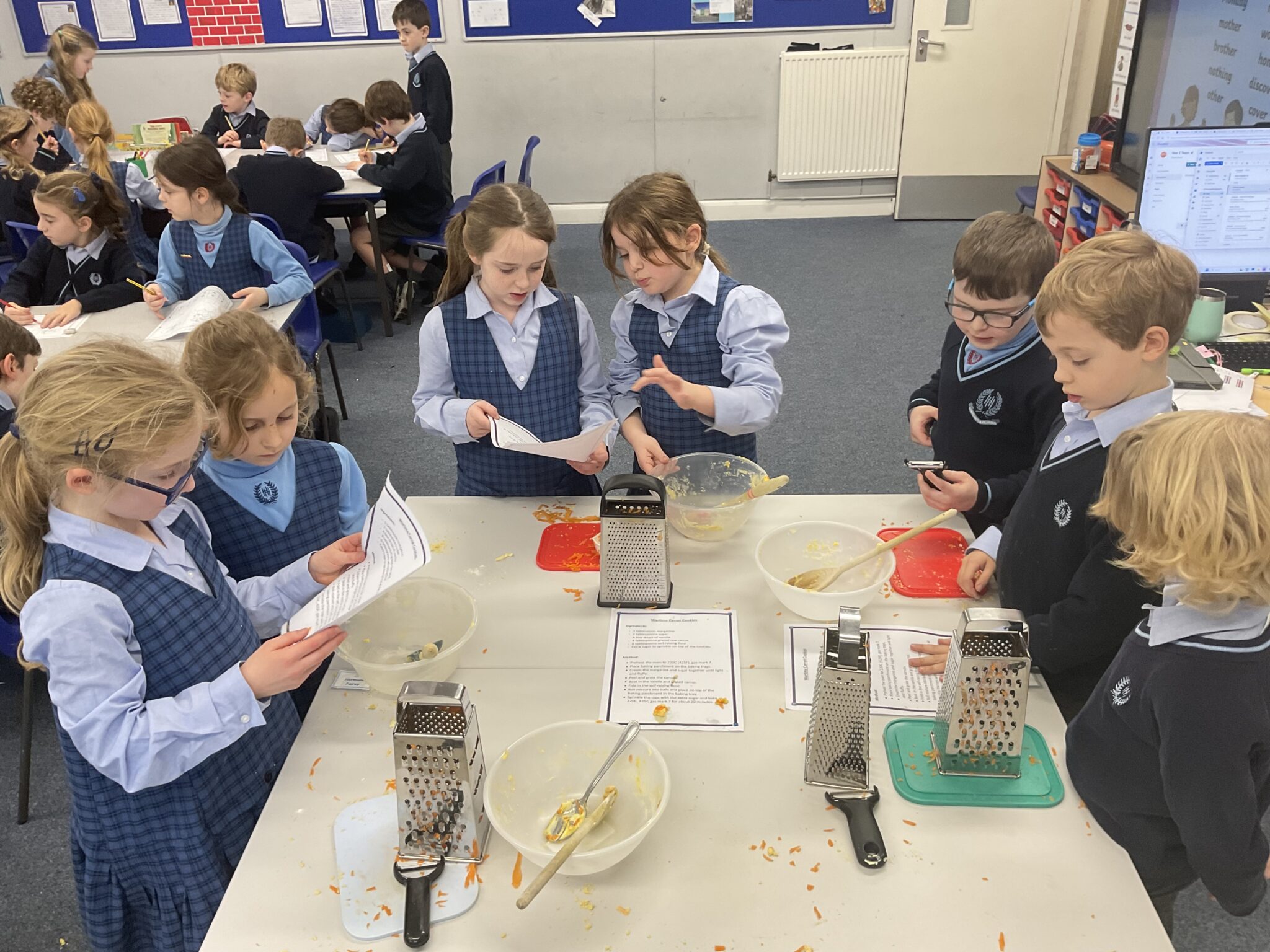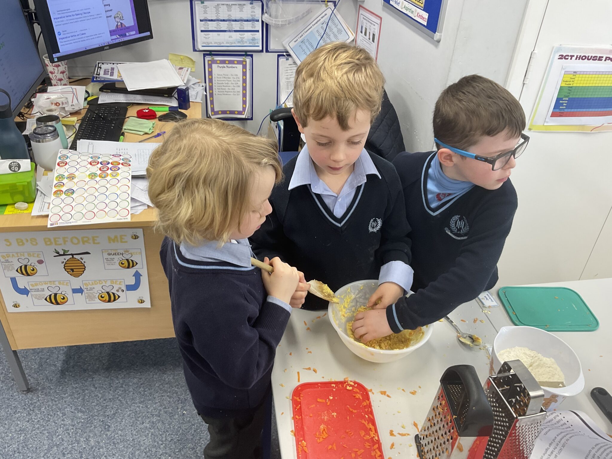 As part of our topic, we travelled back in time to learn about life during the war. We discovered that families were given ration books, which meant they could only buy small amounts of certain foods. To understand what this was like, we challenged ourselves to bake wartime carrot biscuits using limited ingredients just as families would have done many years ago!