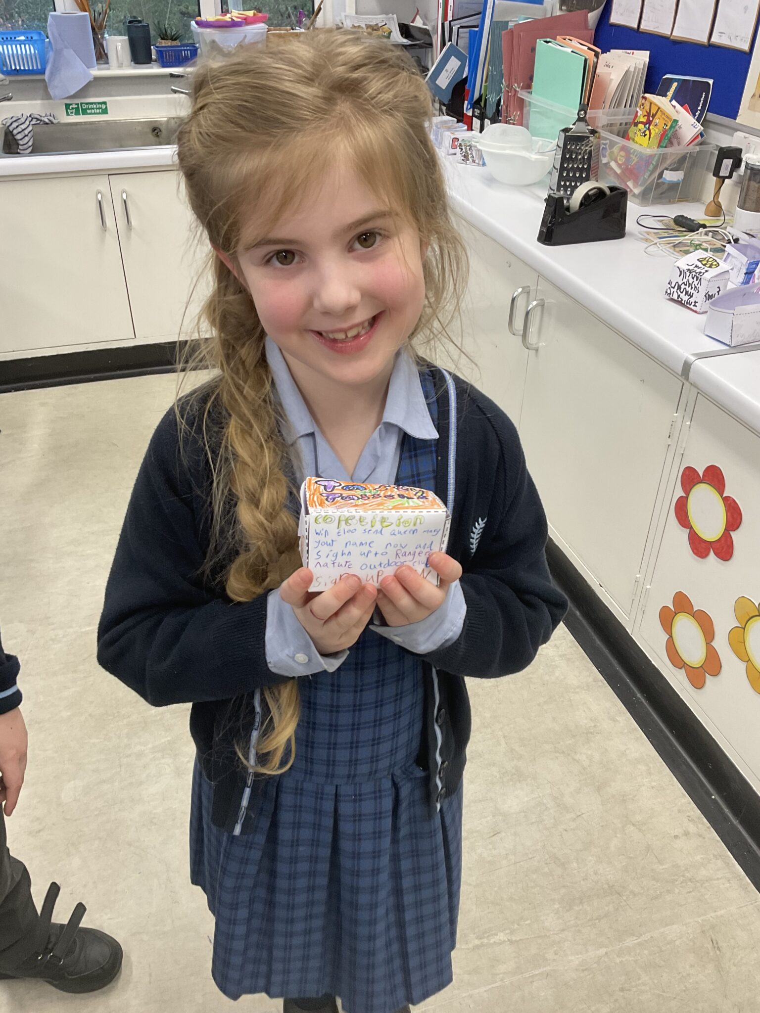 But we didn’t stop there… We became creative designers too! The children invented their own biscuit brands, complete with catchy names, exciting slogans and eye-catching packaging to attract customers. They carefully thought about colours, pictures and persuasive words to make their products stand out on the shelf.