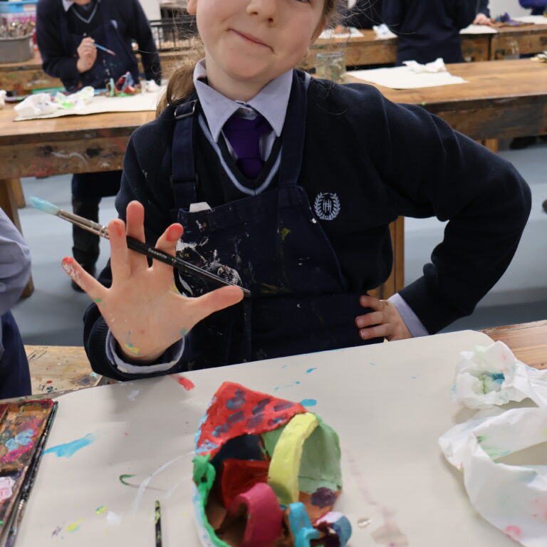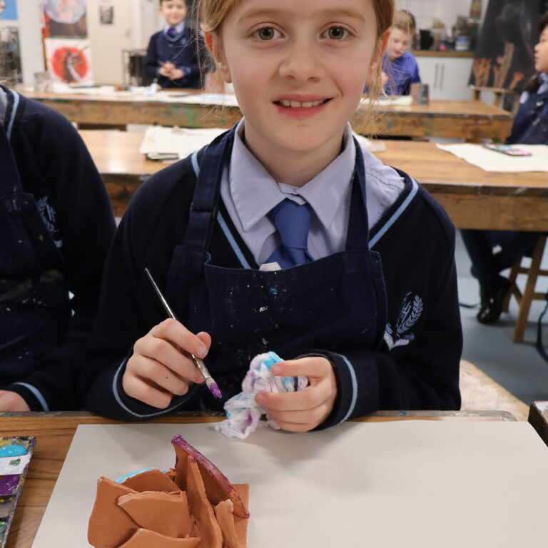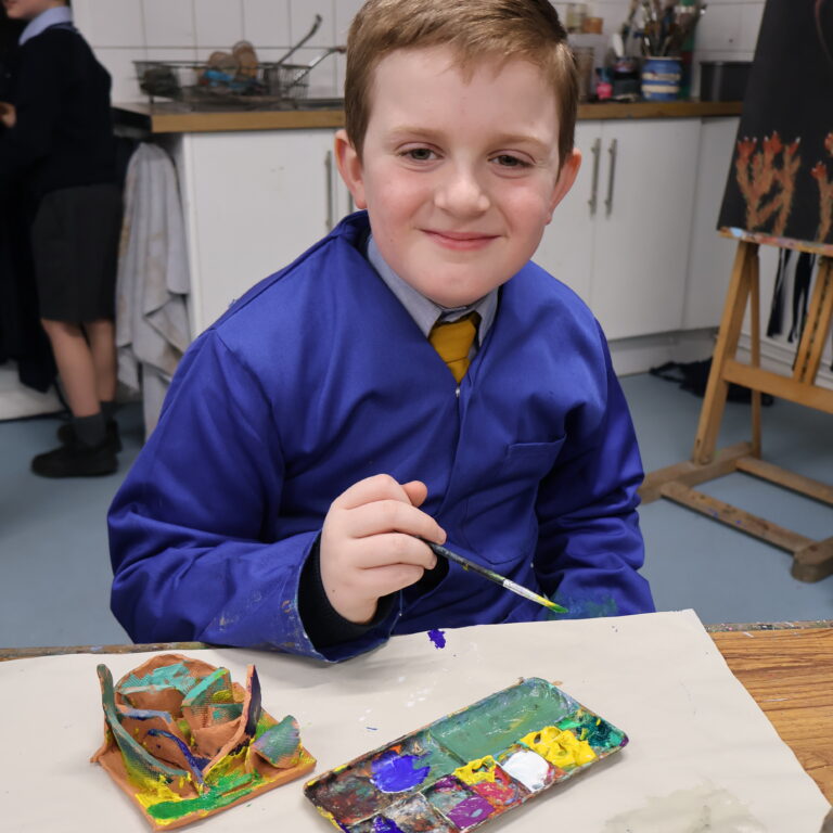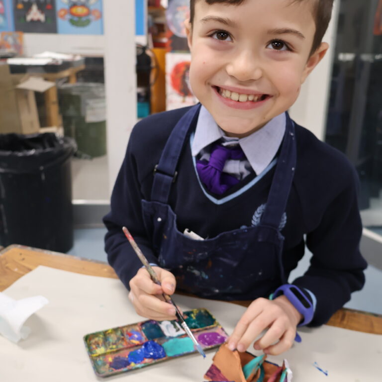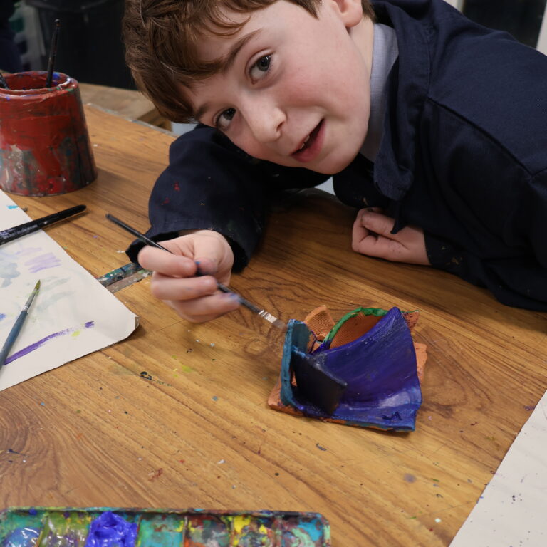 Using a plethora of colours, the Year 4s have enjoyed adding acrylic paints and inks to their abstract relief sculptures. Holes have been created so the friezes can be easily hung on the wall. Tom Johnson / Keith Siddle