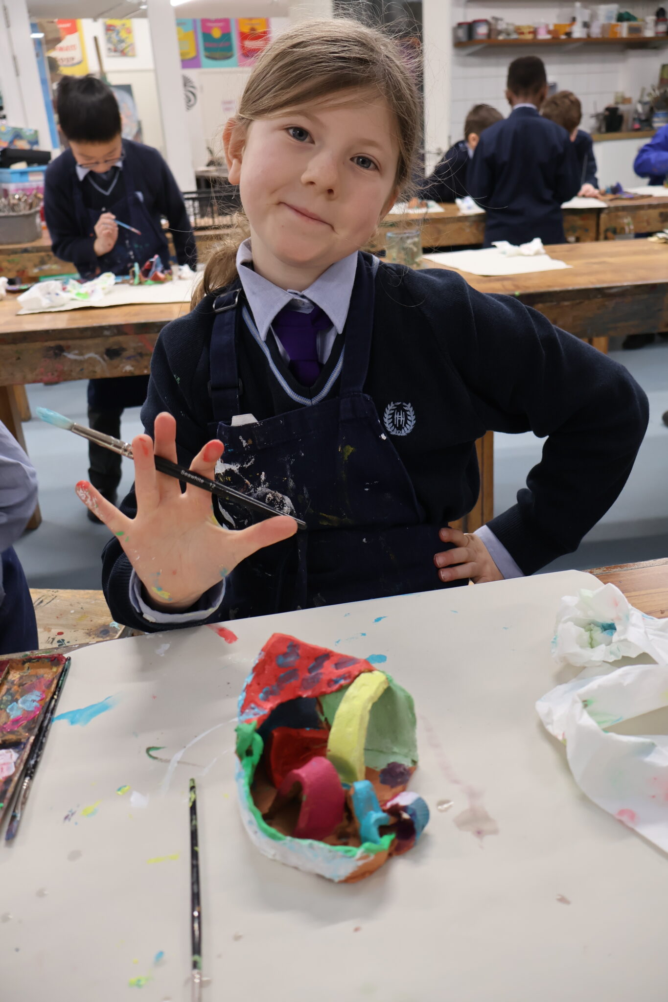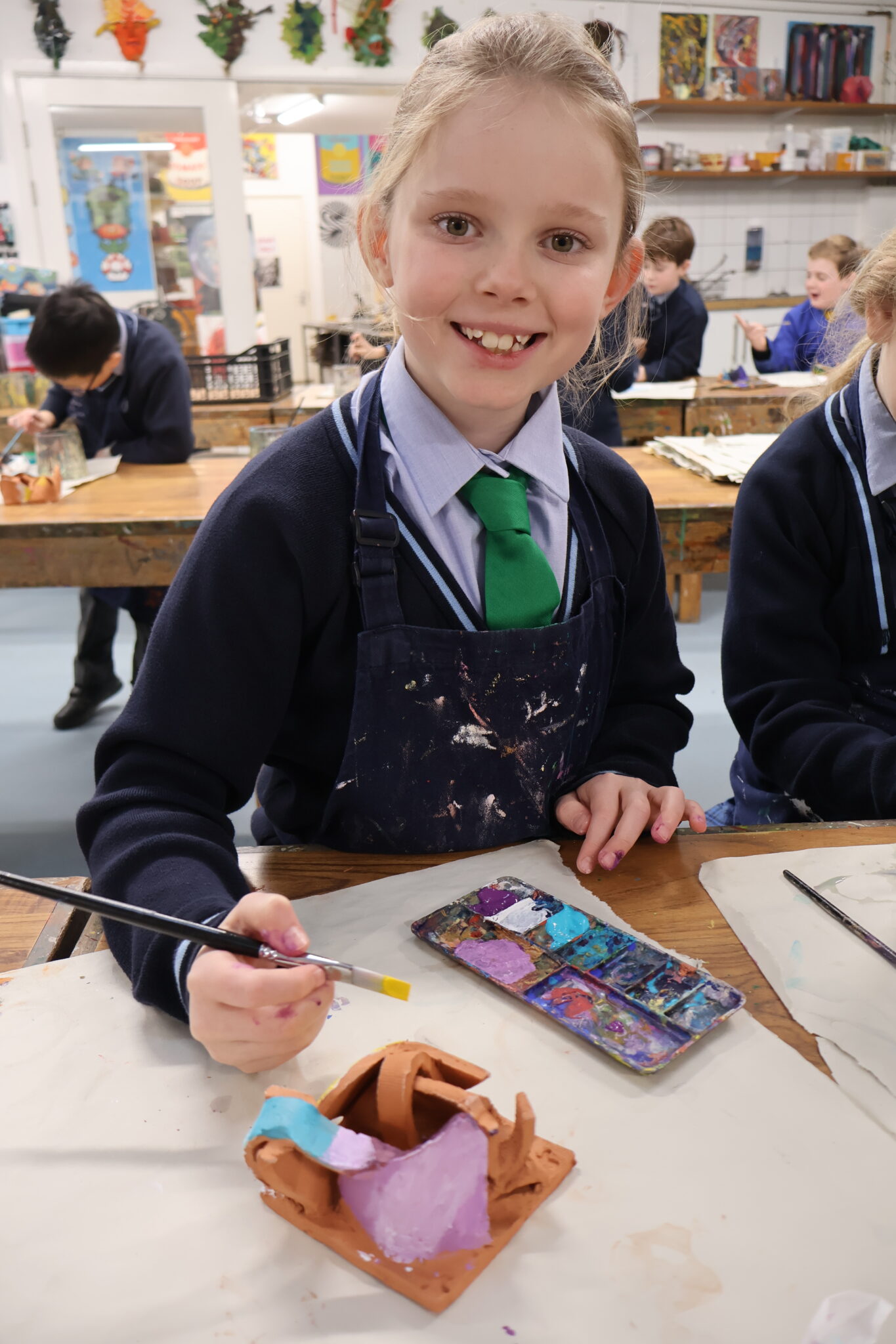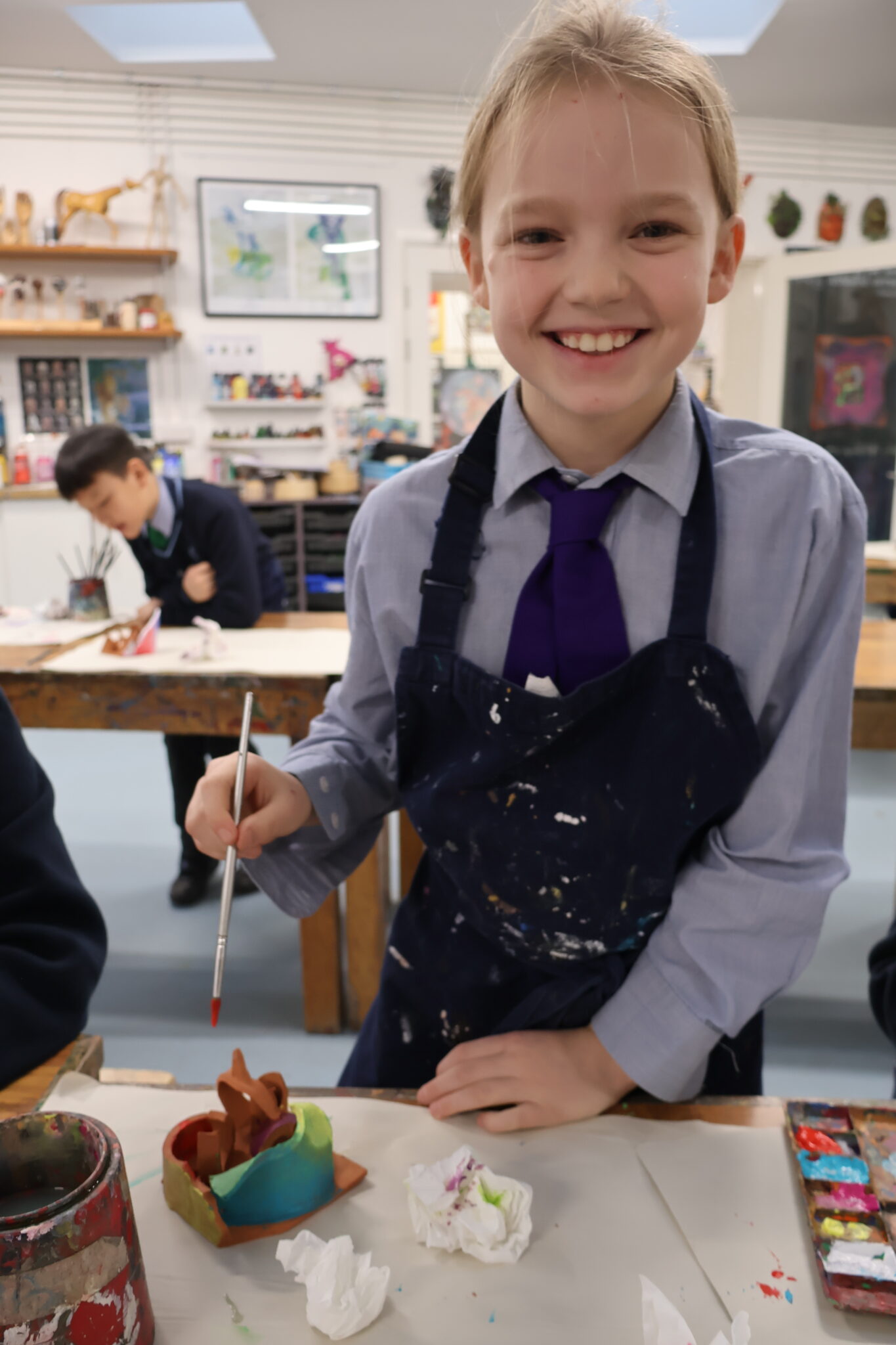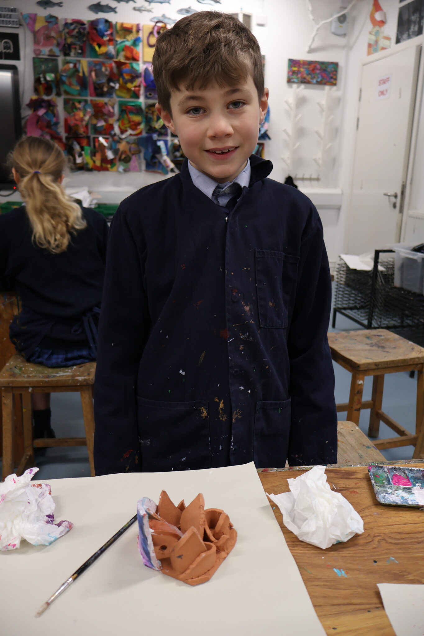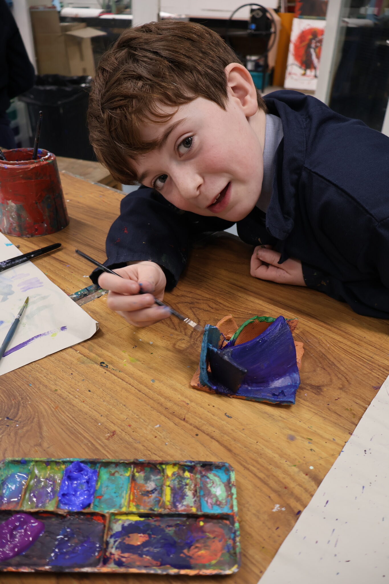 Using a plethora of colours, the Year 4s have enjoyed adding acrylic paints and inks to their abstract relief sculptures. Holes have been created so the friezes can be easily hung on the wall. Tom Johnson / Keith Siddle