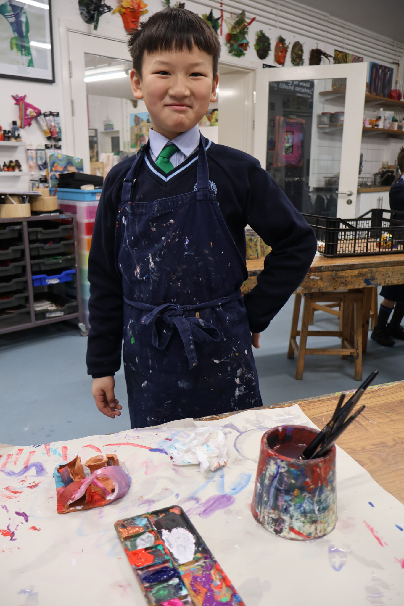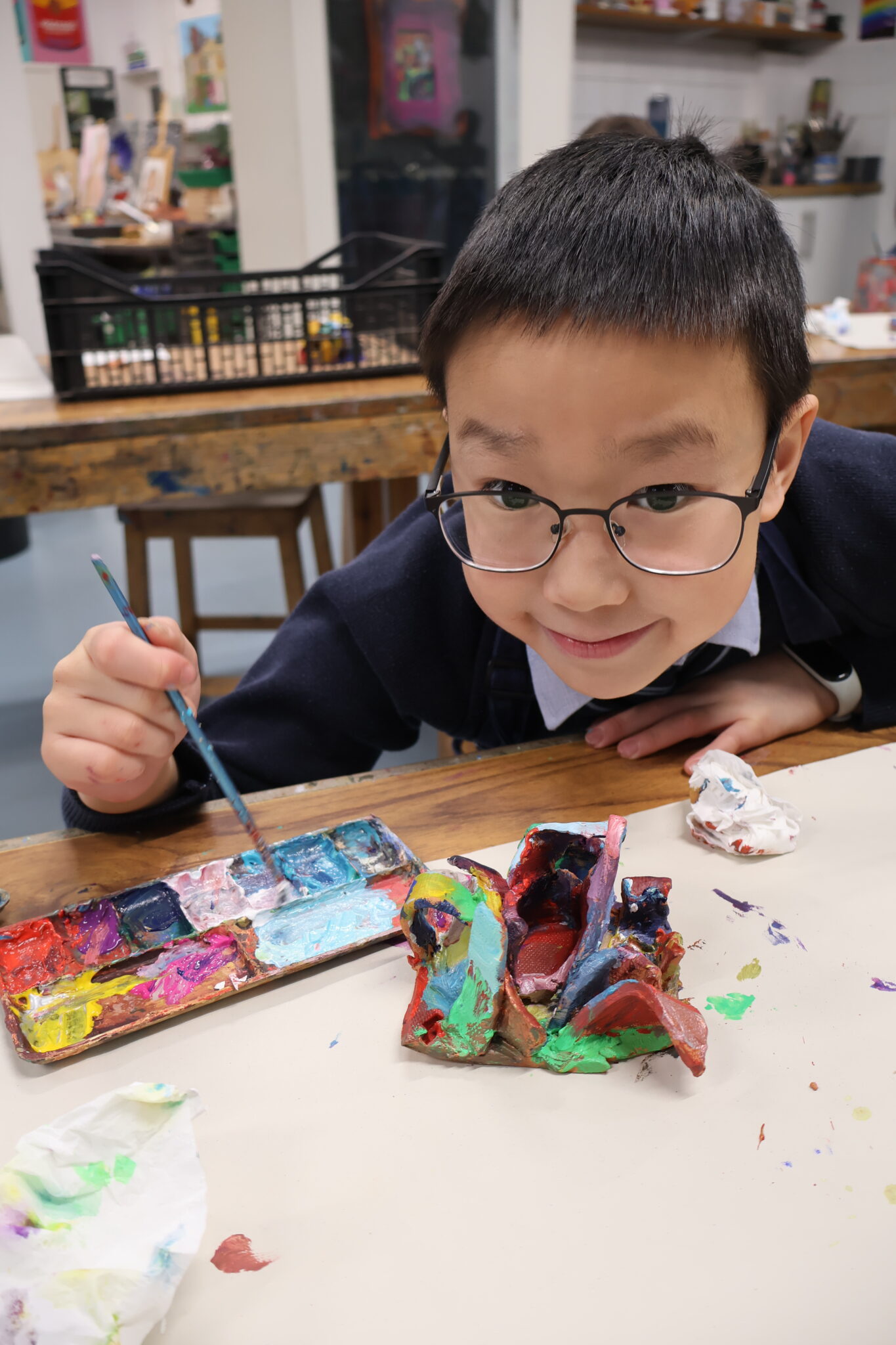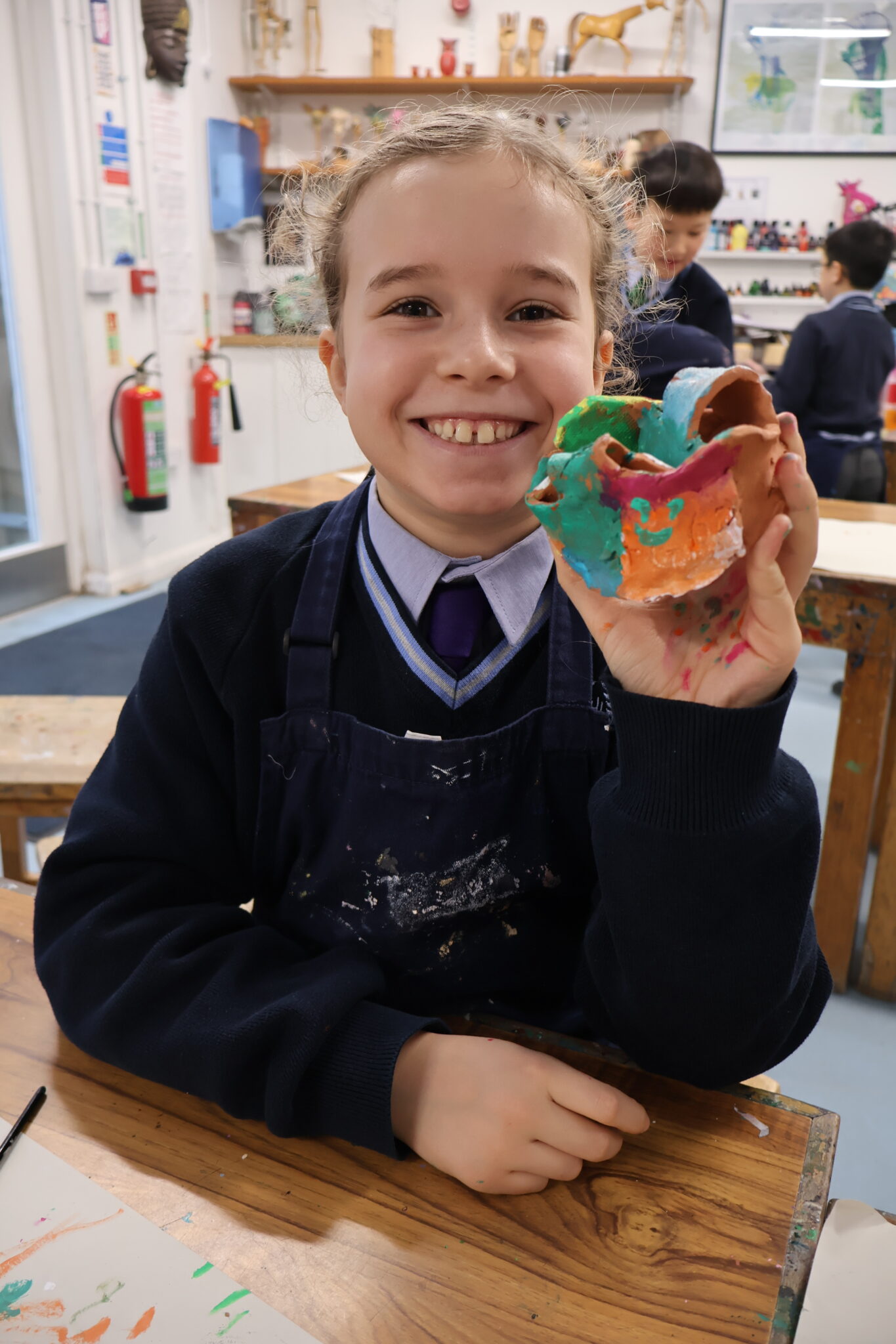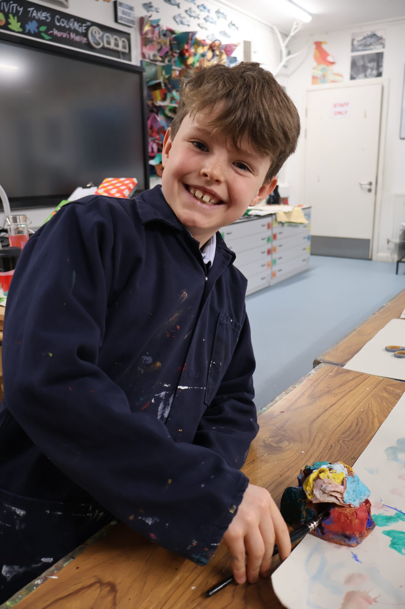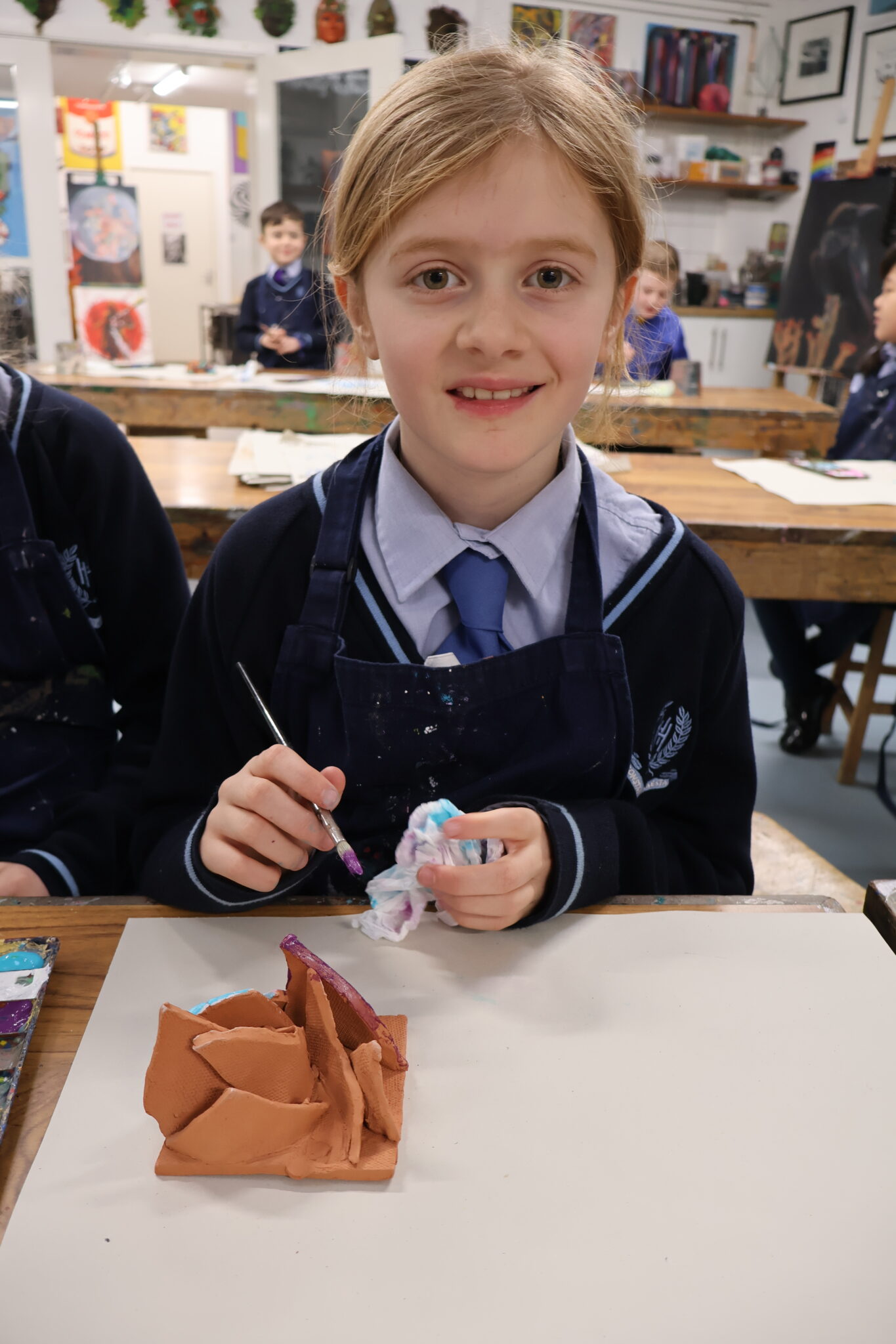 Using a plethora of colours, the Year 4s have enjoyed adding acrylic paints and inks to their abstract relief sculptures. Holes have been created so the friezes can be easily hung on the wall. Tom Johnson / Keith Siddle