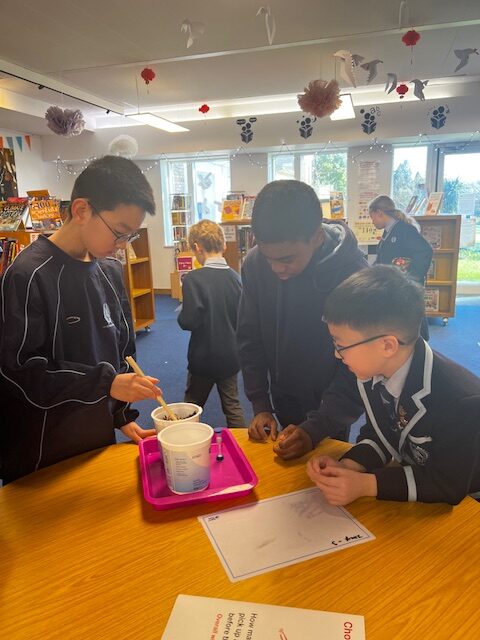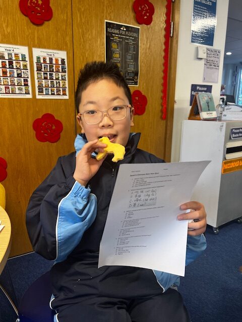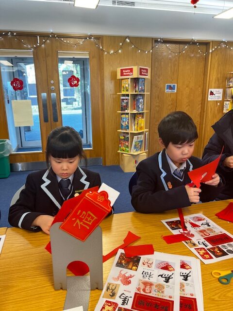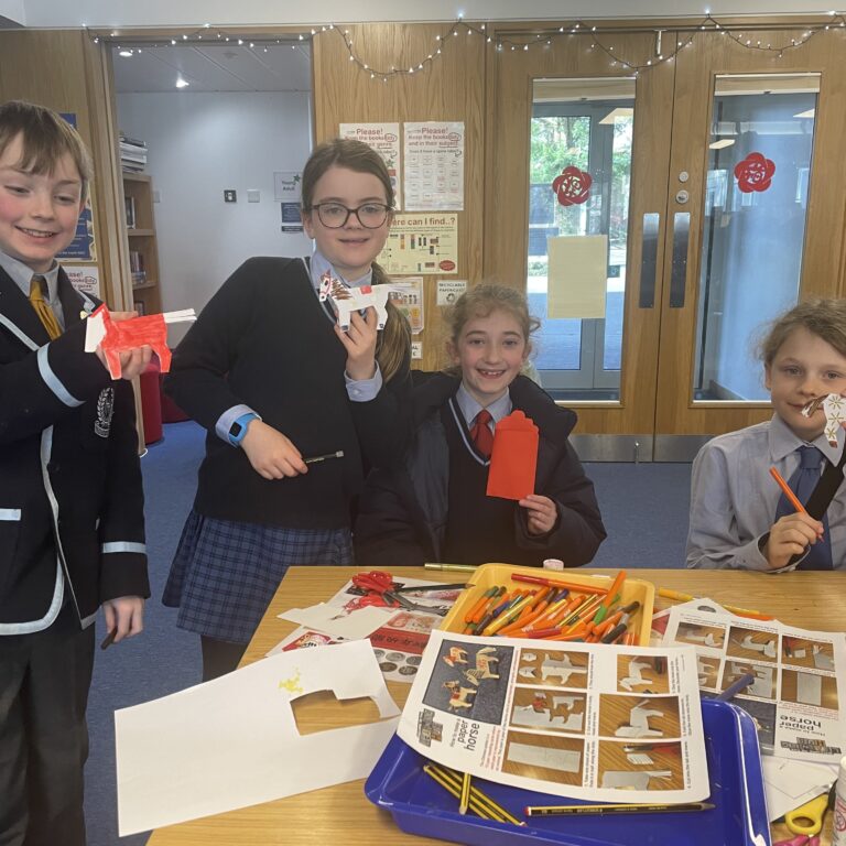 A lot of fun was had celebrating Chinese New Year on Wednesday in the Learning Hub. Leon created a quiz for Year 3 and 4. Pupils could also take part in Sean’s really informative quiz about Chinese New Year traditions. Those up for competition took part in the Chopstick Challenge where they had to pick up as many mini plastic horses before the salt ran out – this was much harder than it looked! Anna demonstrated her calligraphy skills and it was possible to have a go using real Chinese brushes and paper (with water rather then ink). Aaron did a great job of hiding red paper cut horses around the room to find, and those in a crafty mood could make horses and also decorate lucky red envelopes and money to put inside. Thank you to everyone who helped and everyone who took part!