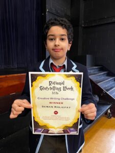 Congratulations to Artemis and Senan, winners of the Prep school Creative Writing Challenge, part of National Storytelling Week. They were asked to write a piece of creative writing inspired by one of two images; a boat stranded on a beach or a spooky castle at nighttime. For their story they needed to include creative and imaginative references to different sounds that might be heard, rhythm and music, to tie in with the theme for National Storytelling Week ‘soundtrack your life’. The prizes were awarded for their creative and imaginative writing and use of language. Here are some lovely excerpts from their stories. In addition, a Special Commendation was awarded to Willow in Pre-Prep who submitted a story.