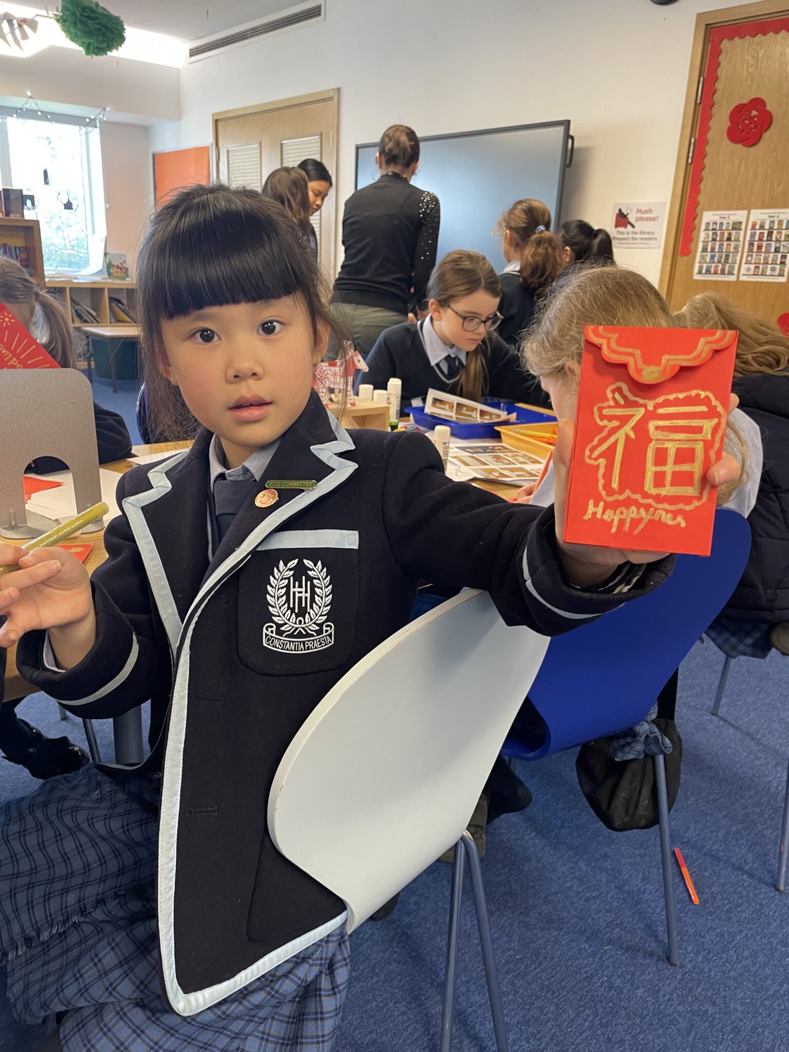 A lot of fun was had celebrating Chinese New Year on Wednesday in the Learning Hub. Leon created a quiz for Year 3 and 4. Pupils could also take part in Sean’s really informative quiz about Chinese New Year traditions. Those up for competition took part in the Chopstick Challenge where they had to pick up as many mini plastic horses before the salt ran out – this was much harder than it looked! Anna demonstrated her calligraphy skills and it was possible to have a go using real Chinese brushes and paper (with water rather then ink). Aaron did a great job of hiding red paper cut horses around the room to find, and those in a crafty mood could make horses and also decorate lucky red envelopes and money to put inside. Thank you to everyone who helped and everyone who took part!