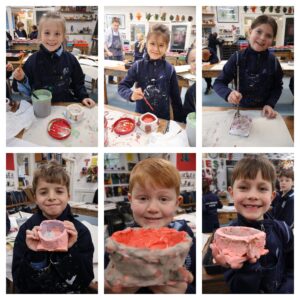 The terracotta candle holders have been fired in the kiln enabling the Year 3 children to paint their first layer of Glaze. Tom Johnson / Keith Siddle