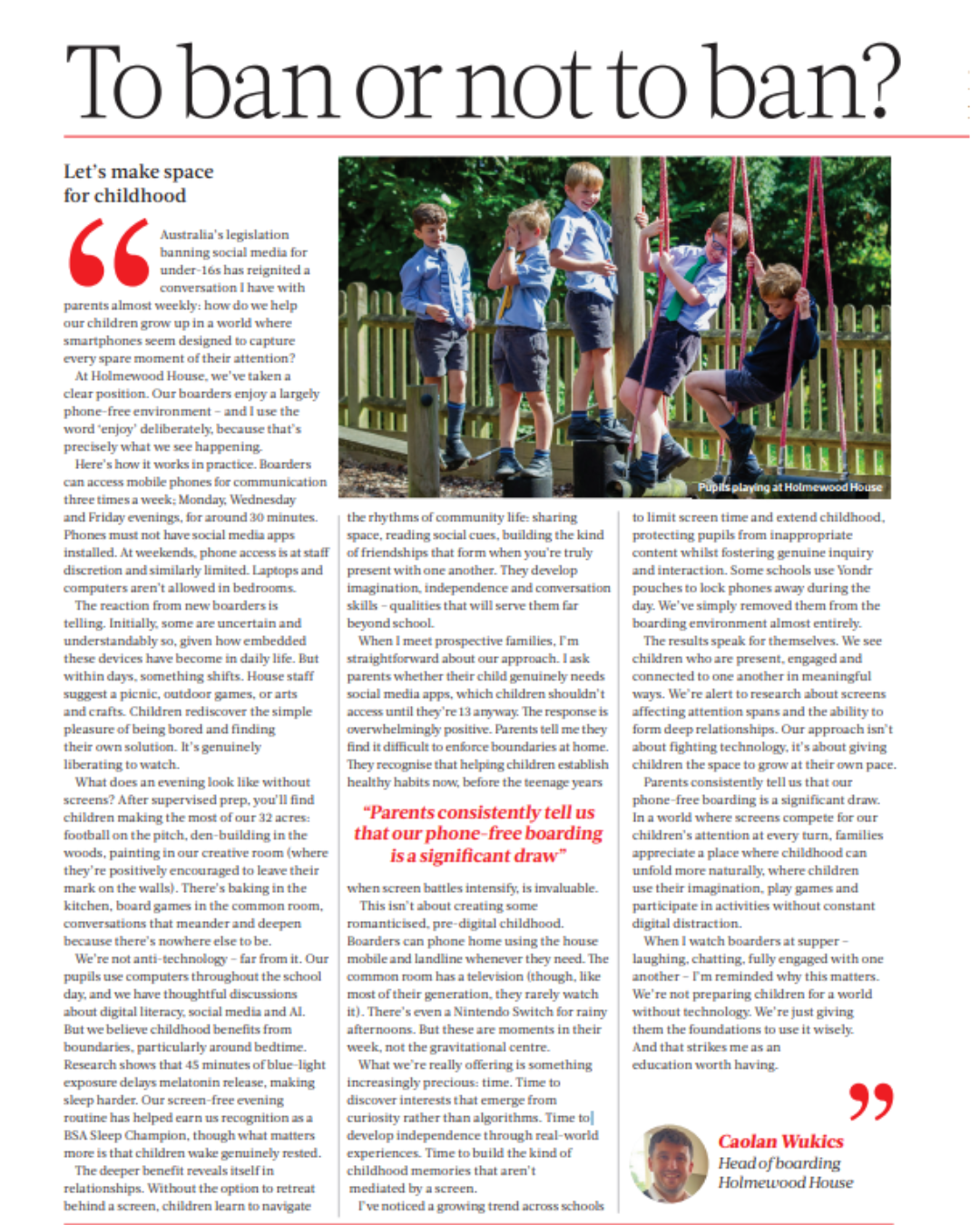 The article, written by Caolan Wukics, Head of Boarding, explores how we balance technology with boundaries, why the deeper benefit reveals itself in relationships and what happens when you give children the space to grow at their own pace. ⁠